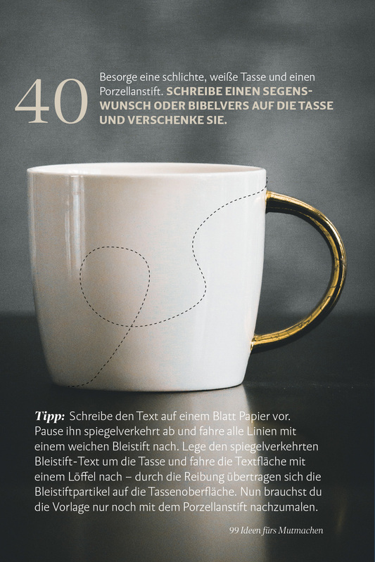 | Schlagworte | Anregungen • Aufgaben • Aufmunterung • challenge • ermutigen • Ermutigung • Hoffnung schenken • Ideenbuch • Kreative Ideen • Mitarbeiter • Praktische Tipps • Worte, die guttun |