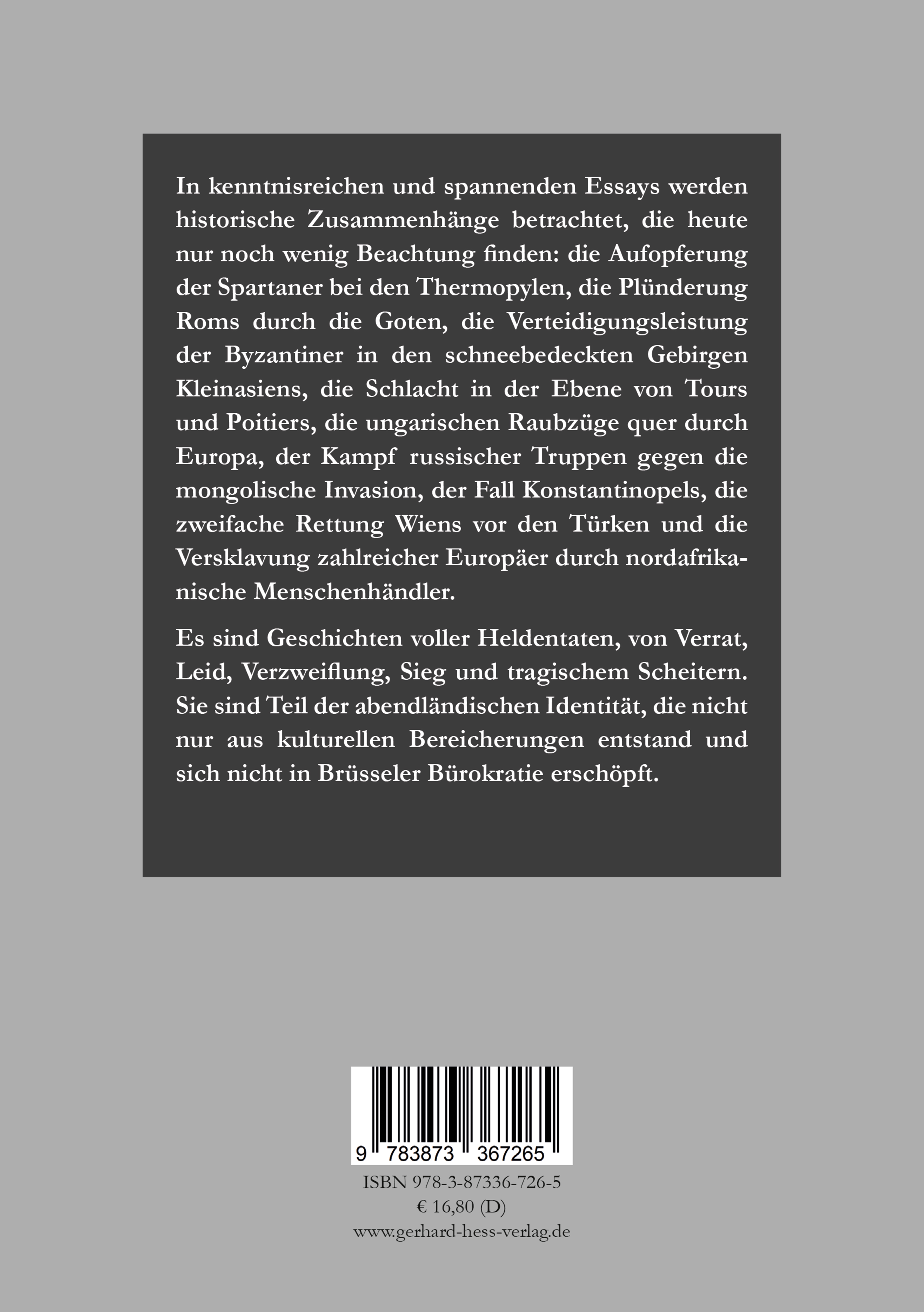 Andreas Abros legt hier in der Tradition bester deutscher Geschichtsschreibung ein großartiges, weitgespanntes Werk zu einem großen, heute mehr denn je wieder aktuellen Thema vor: Die Verteidigung der europäisch-abendländischen Zivilisation während zwei Jahrtausenden von den Hellenen bis zum Beginn der europäischen Weltexpansion im 16. Jahrhundert in all jenen historischen Schicksalsstunden, als ihre Existenz buchstäblich auf des Messers – oder besser des Schwertes – Schneide stand. Dem Autor gebührt Dank und Anerkennung, jene absichtsvoll verdrängten Schlüsselerfahrungen der gemeinsamen europäischen Geschichte lesbar, spannend und zugleich stilistisch anspruchsvoll wieder einem breiten Publikum zugänglich gemacht zu haben. Das Werk vermeidet die unter zeitgenössischen universitären Historikern so gängigen „theoriegeleiteten“ Definitionsklaubereien und ihre allzu häufige politisch korrekte Selbstzensur und Voreingenommenheit. Stattdessen bestechen eine solide Quellenarbeit und eine stringente, ergebnisoffene Argumentation. (Dr. Albrecht Rothacher)