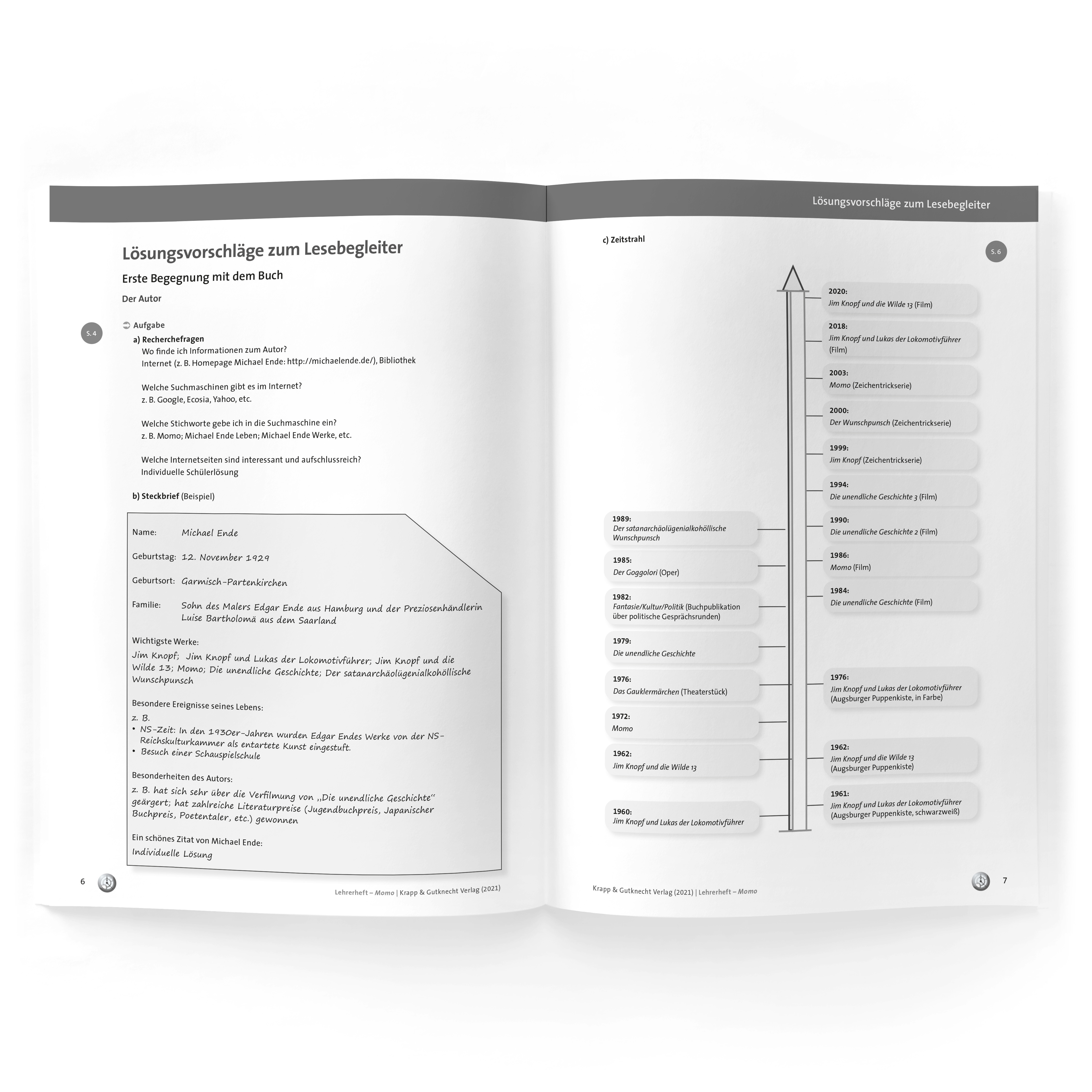 Michael Ende beantwortet nicht nur Kinderfragen, wenn er die Zeit oder unseren Umgang mit Natur und Umwelt in spannende Geschichten packt, er schreibt auch für diejenigen, die nie verlernt haben zu staunen, zu fragen, sich zu begeistern. Mit "Momo" haben unsere Autorinnen die Lektüre für die Klassen 5-8 aufbereitet.Das Lehrerheft zum separat erhältlichen Lesebegleiter (ISBN: 978-3-96323-173-5, Bestell-Nr.: S2173) enthältDas Lehrerheft enthältKurzübersicht und aktueller BezugInhaltsangabeHinweise zum Aufbau und VorgehenLösungsvorschläge zum LesebegleiterFragen zum Inhalt des RomansKlassenarbeitsvorschlag