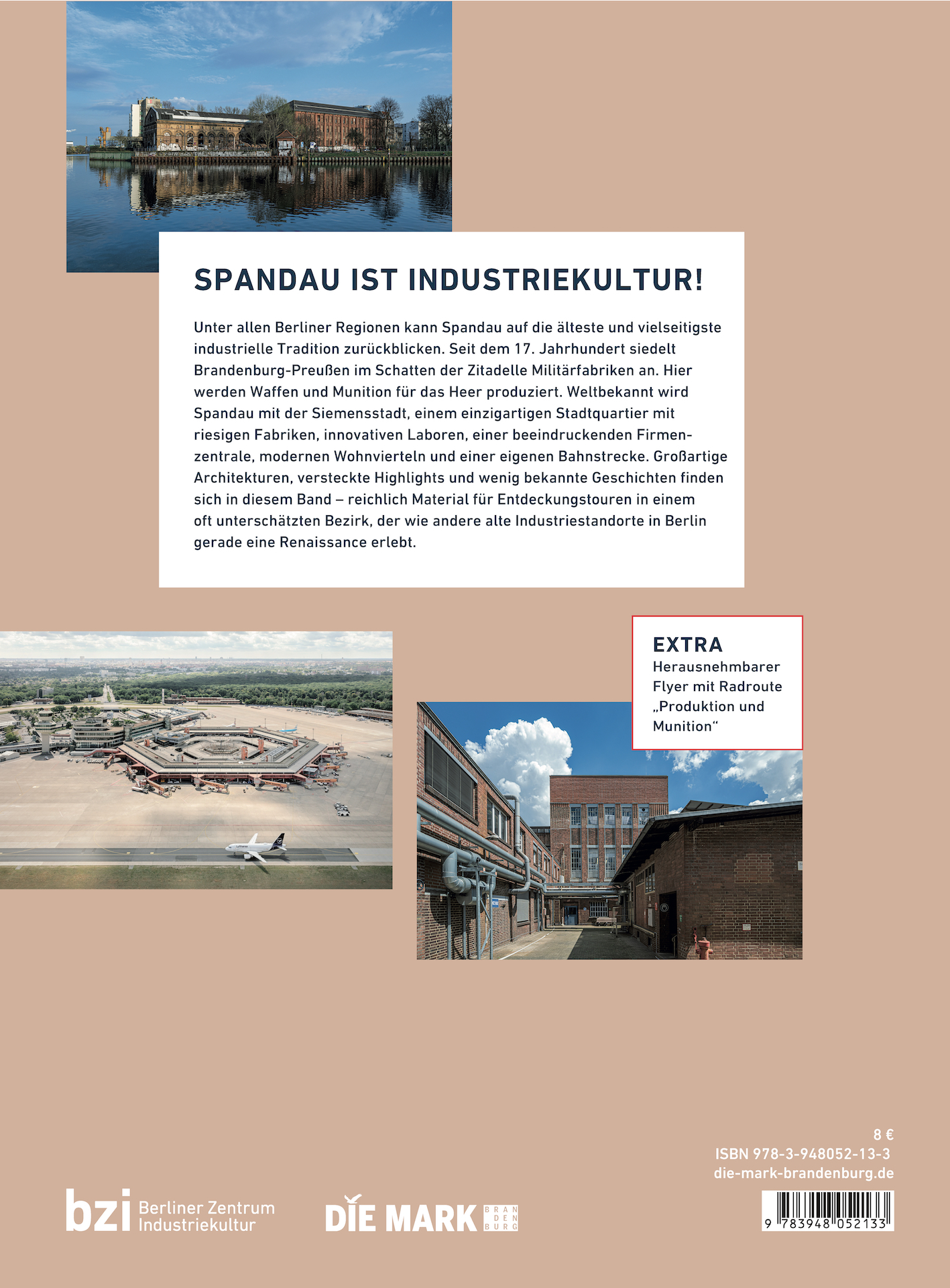 SPANDAU IST INDUSTRIEKULTUR!Unter allen Berliner Regionen kann Spandau auf die älteste und vielseitigste industrielle Tradition zurückblicken. Seit dem 17. Jahrhundert siedelt Brandenburg-Preußen im Schatten der Zitadelle Militärfabriken an. Hier werden Waffen und Munition für das Heer produziert. Weltbekannt wird Spandau mit der Siemensstadt, einem einzigartigen Stadtquartier mit riesigen Fabriken, innovativen Laboren, einer beeindruckenden Firmenzentrale, modernen Wohnvierteln und einer eigenen Bahnstrecke. Großartige Architekturen, versteckte Highlights und wenig bekannte Geschichten finden sich in diesem Band - reichlich Material für Entdeckungstouren in einem oft unterschätzten Bezirk, der wie andere alte Industriestandorte in Berlin gerade eine Renaissance erlebt.EXTRAHerausnehmbarer Flyer mit Radroute "Produktion und Munition"