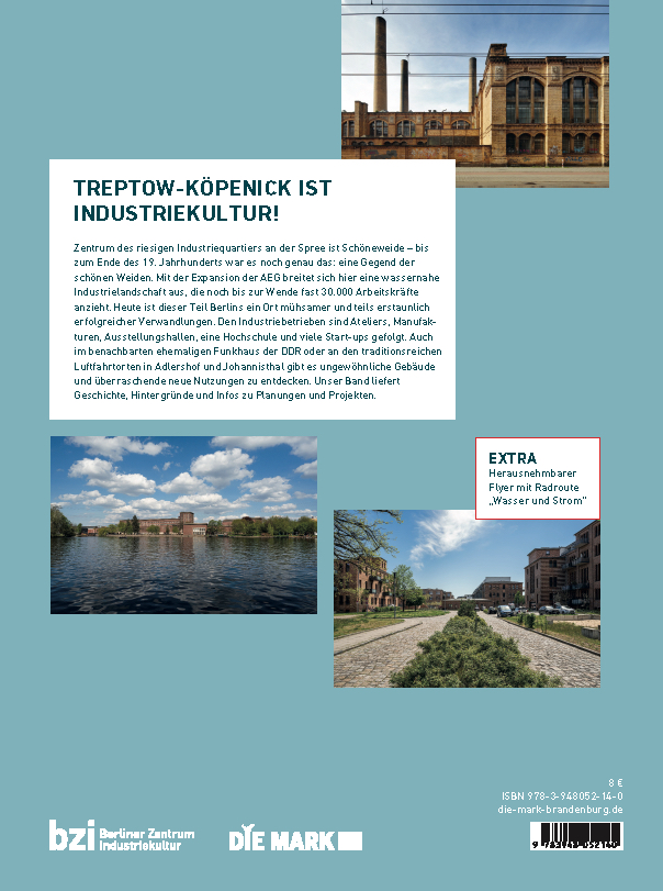 TREPTOW-KÖPENICK IST INDUSTRIEKULTUR!Zentrum des riesigen Industriequartiers an der Spree ist Schöneweide - bis zum Ende des 19. Jahrhunderts war es noch genau das: eine Gegend der schönen Weiden. Mit der Expansion der AEG breitet sich hier eine wassernahe Industrielandschaft aus, die noch bis zur Wende fast 30.000 Arbeitskräfte anzieht. Heute ist dieser Teil Berlins ein Ort mühsamer und teils erstaunlich erfolgreicher Verwandlungen. Den Industriebetrieben sind Ateliers, Manufakturen, Ausstellungshallen, eine Hochschule und viele Start-ups gefolgt. Auch im benachbarten ehemaligen Funkhaus der DDR oder an den traditionsreichen Luftfahrtorten in Adlershof und Johannisthal gibt es ungewöhnliche Gebäude und überraschende neue Nutzungen zu entdecken. Unser Band liefert Geschichte, Hintergründe und Infos zu Planungen und Projekten.EXTRAHerausnehmbarer Flyer mit Radroute "Wasser und Strom"