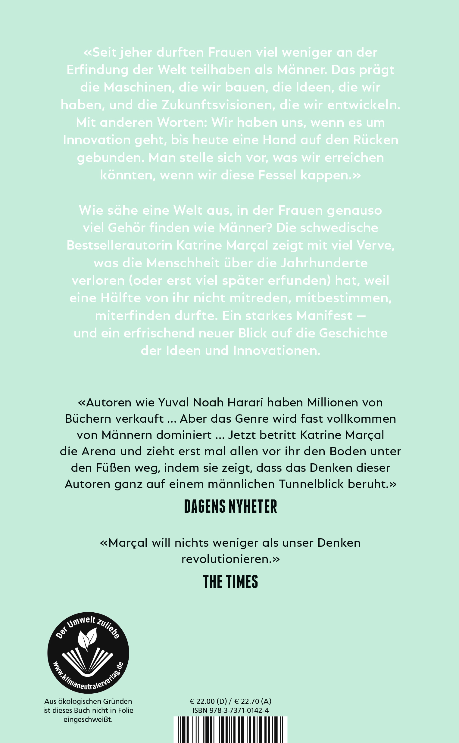 lt;p>Warum kam man erst im späten 20. Jahrhundert auf die Idee, Räder unter Reisekoffer zu montieren - obwohl es das Rad schon seit fünftausend Jahren gibt? Wären wir womöglich nie auf den Mond gelangt ohne das Wissen amerikanischer Näherinnen? Und wie sähe eigentlich eine Welt aus, in der Frauen genauso viel Gehör finden wie Männer? Die schwedische Bestsellerautorin Katrine Marçal zeigt mit viel Verve, was die Menschheit über die Jahrhunderte verloren (oder erst viel später erfunden) hat, weil eine Hälfte von ihr - die Frauen - nicht mitreden, mitbestimmen, miterfinden durfte. Und sie dreht die Perspektive um: Was wäre denn, wenn wir einmal nicht von der frühgeschichtlichen «Bronzezeit» sprächen, sondern von der «Keramikzeit»? Würde sich unsere Sicht auf alles Nachfolgende ändern - und vielleicht auch etwas daran, dass heute nur drei Prozent des globalen Wagniskapitals weiblichen Gründerinnen anvertraut werden? Würden wir am Ende gar Lösungen finden, um der planetaren Zerstörung, die die Menschheit in Gang gesetzt hat, etwas entgegenzusetzen? Viel zu lange haben wir die negativen Folgen der fixen Ideen von Männlichkeit und Weiblichkeit unterschätzt. Ein starkes Manifest - und ein erfrischend neuer Blick auf die Geschichte der Innovationen.