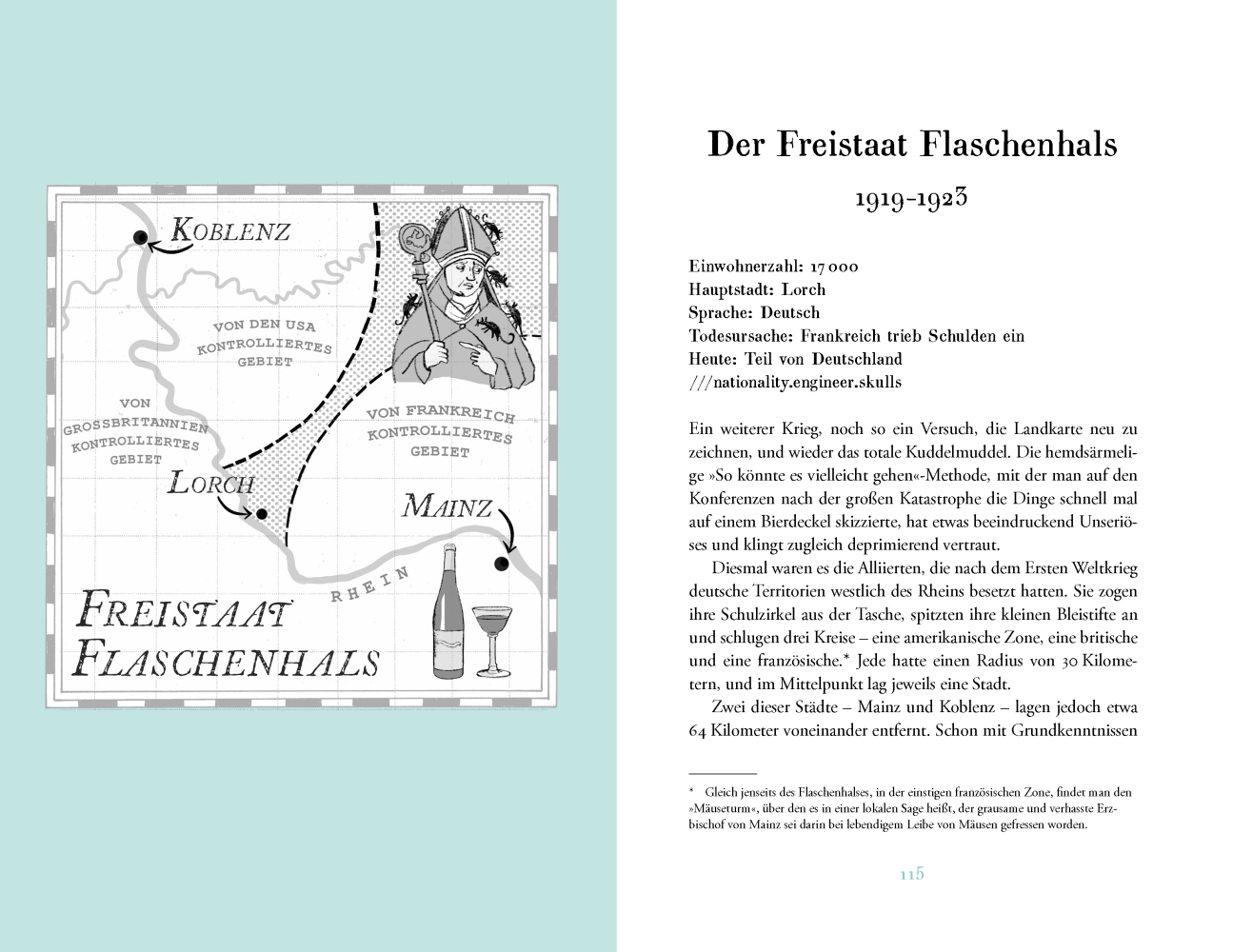 In diesem witzigen Atlas nimmt uns Gideon Defoe mit in eine Wunderkammer der Geschichte und erkundet so unterhaltsam wie vergnüglich die skurrilen, bizarren und mysteriösen Schicksale von 48 Ländern, die es heute aus unzähligen und teilweise absurden Gründen nicht mehr gibt, unter anderem die Republik Flaschenhals oder die Erfrischungsinseln.