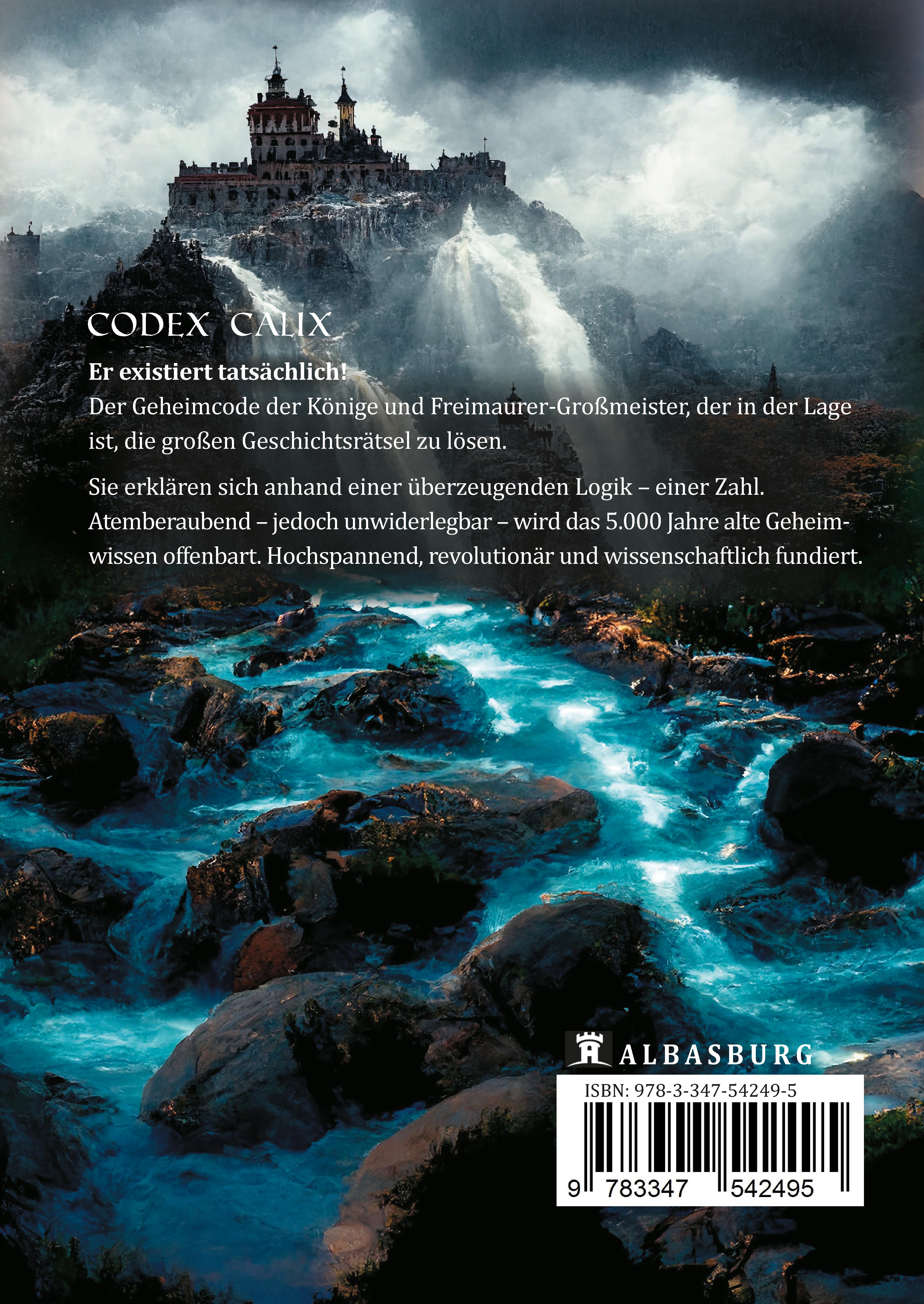 CODEX CALIXEr existiert tatsächlich!Der Geheimcode der Könige und Freimaurer-Großmeister, der in der Lage ist, die großen Geschichtsrätsel zu lösen.Sie erklären sich anhand einer überzeugenden Logik - einer Zahl.Atemberaubend - jedoch unwiderlegbar - wird das 5.000 Jahre alte Geheimwissen offenbart, dessen Wurzeln bis in die ersten Dynastien des Alten Ägyptens reichen. Hochspannend und wissenschaftlich fundiert.Hierüber erklären sich die faszinierenden Hinweise, die uns große Meister wie Leonardo da Vinci, Jan van Eyck oder Albrecht Dürer in ihren Werken hinterließen. Und sogar das Carré Sator-Quadrat der Urchristen lässt sich dank des Codes entschlüsseln, wodurch sich parallel die Urfassung des Vaterunsers offenbart - ein wissenschaftlicher Durchbruch von unermesslichem Ausmaß.Sie werden erstaunt sein!