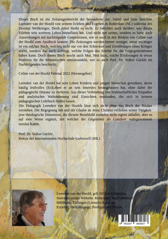 | Schlagworte | Angst • Antwort • Arbeit • Blick • damals • Familie • Gedanken • Glaube • Glück • Heilpädagogik • Hoffnung • Kinder • Lebenserfahrung • Leendert • Liebe • Menschen • Orientierung • Pädagogen • Welt • Wissen • Zeitzeugenbericht |