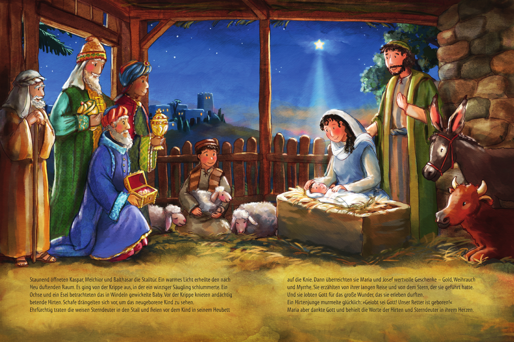 - Kindgerecht und zauberhaft illustriert werden die Stationen der christlichen Weihnachtsgeschichte rund um Maria, Josef und die Geburt Jesu dargestellt.