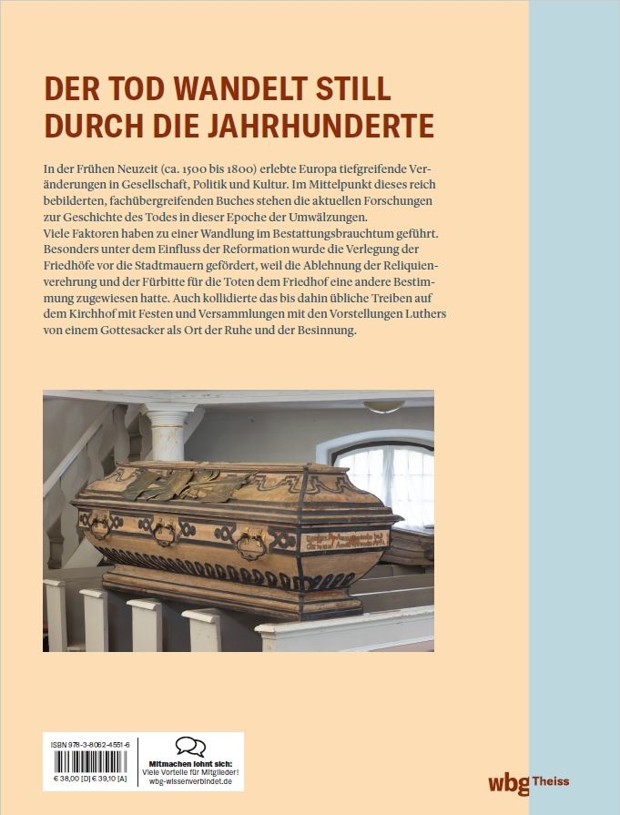 Die Geschichte der Bestattung ist ein wesentliches Element der Kulturgeschichte des Menschen. Die Bestattungskultur der Frühen Neuzeit erweist sich hier als besonders vielfältig - tiefgreifende Veränderungen in Politik, Gesellschaft und Wirtschaft in Europa in der Zeit zwischen 1500 und 1800 sind hier die Ursache. Im Mittelpunkt des Bandes stehen die interdisziplinären Forschungen zur "Geschichte des Todes" in der frühen Neuzeit. Verschiedene Faktoren haben auch zu einem Wandlungsprozess im Bestattungsbrauchtum geführt. So wurde etwa unter dem Einfluss der Reformation die Verlegung der Friedhöfe vor die Stadtmauern gefördert, weil die Ablehnung der Reliquienverehrung und der Fürbitte für die Toten dem Friedhof eine andere Bestimmung zugewiesen hatte. Auch kollidierte das bis dahin übliche Treiben auf dem Kirchhof mit Festen und Versammlungen mit den Vorstellungen Luthers von einem Gottesacker als Ort der Ruhe für die Toten und der Besinnung für die Lebenden. Zugleich entwickeln sich neue Bestattungsformen.