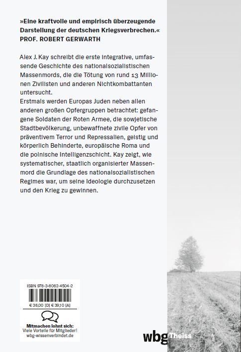 | Schlagworte | 1933 bis 1945 • 2. Weltkrieg • Aufstand im Warschauer Ghetto • Auschwitz • Deutsche Geschichte • Deutsches Reich • ethnische Säuberungen • Euthanasie • Gesamtdarstellung • Geschichte Europa • Hinrichtung • Holocaust • Judenverfolgung • Konzentrationslager • Kriegsgefangene • Kriegsverbrechen • Longlist Wissenschaftsbuch des Jahres • Massengrab • Massenhinrichtung • Massenmord • Nationalsozialismus • nationalsozialistische Ideologie • Nazideutschland • Nazi-Verbrechen • NS Verbrechen • Opfer des Nationalsozialismus • Polen • Rassismus • Rote Armee • Sinti und Roma • Sowjetunion • Todesmarsch • UdSSR • unwertes Leben • Verhungern • Vernichtungslager • Vernichtungsprogramm • Völkermord • Zweiter Weltkrieg |