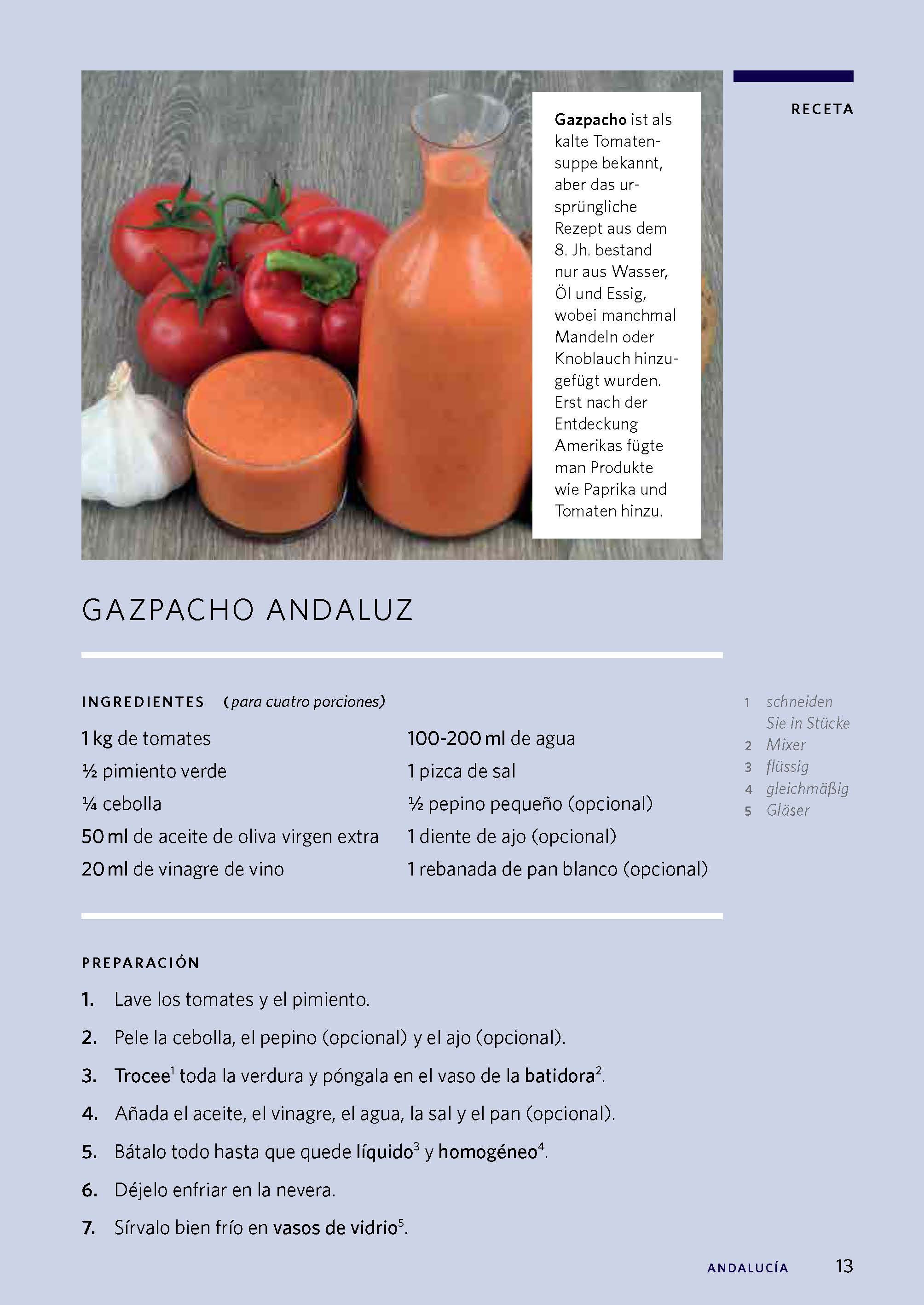 - In kleinen Übungen zu den Texten und zum kulinarischen Wortschatz erweitern Sie Ihre Spanischkenntnisse