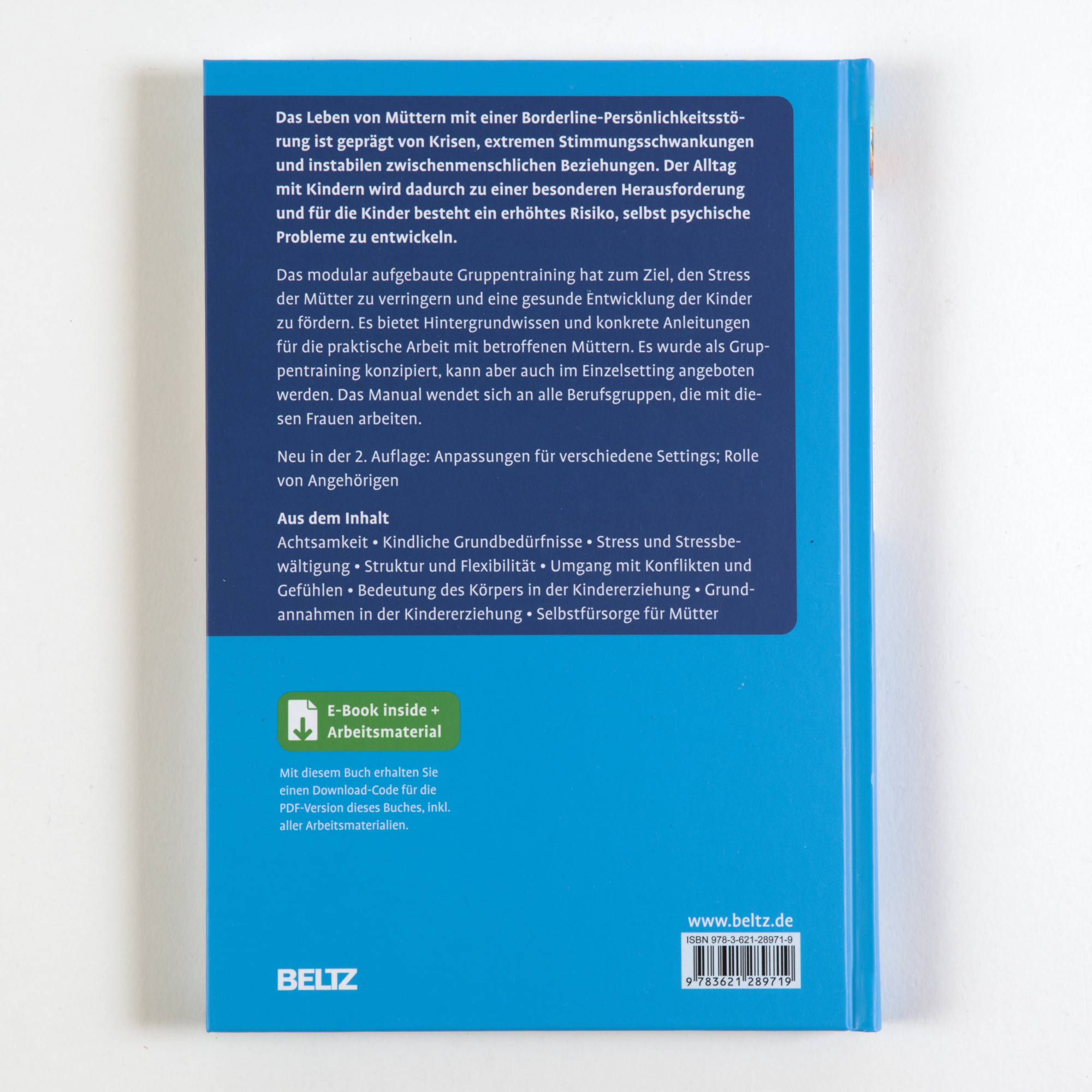 Bei diesem Manual handelt sich um ein modulares Training für Mütter mit Borderline-Persönlichkeitsstörung, das in Gruppen, in Teilen aber auch im Einzelsetting angeboten werden kann.