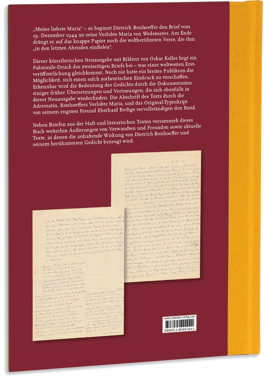 Überarbeitete und umfangreich ergänzte Neuausgabe."Meine liebste Maria" - so beginnt Dietrich Bonhoeffer den Brief vom 19. Dezember 1944 an seine Verlobte Maria von Wedemeyer. Am Ende drängt er auf das knappe Papier noch die weltberühmten Verse, die ihm "in den letzten Abenden einfielen". Dieser künstlerischen Neuausgabe mit Bildern von Oskar Koller liegt ein Faksimile-Druck des zweiseitigen Briefs bei - was einer weltweiten Erstveröffentlichung gleichkommt. Noch nie hatte ein breites Publikum die Möglichkeit, sich einen solch authentischen Eindruck zu verschaffen. Erkennbar wird die Bedeutung des Gedichts durch die Dokumentation einiger früher Übersetzungen und Vertonungen, die sich ebenfalls in dieser Neuausgabe wiederfinden. Die Abschrift des Texts durch die Adressatin, Bonhoeffers Verlobte Maria, und das Original-Typoskript von seinem engsten Freund Eberhard Bethge vervollständigen den Band. Neben Briefen aus der Haft und literarischen Texten versammelt dieses Buch weiterhin Äußerungen von Verwandten und Freunden sowie aktuelle Texte, in denen die anhaltende Wirkung von Dietrich Bonhoeffer und seinem berühmtesten Gedicht bezeugt wird