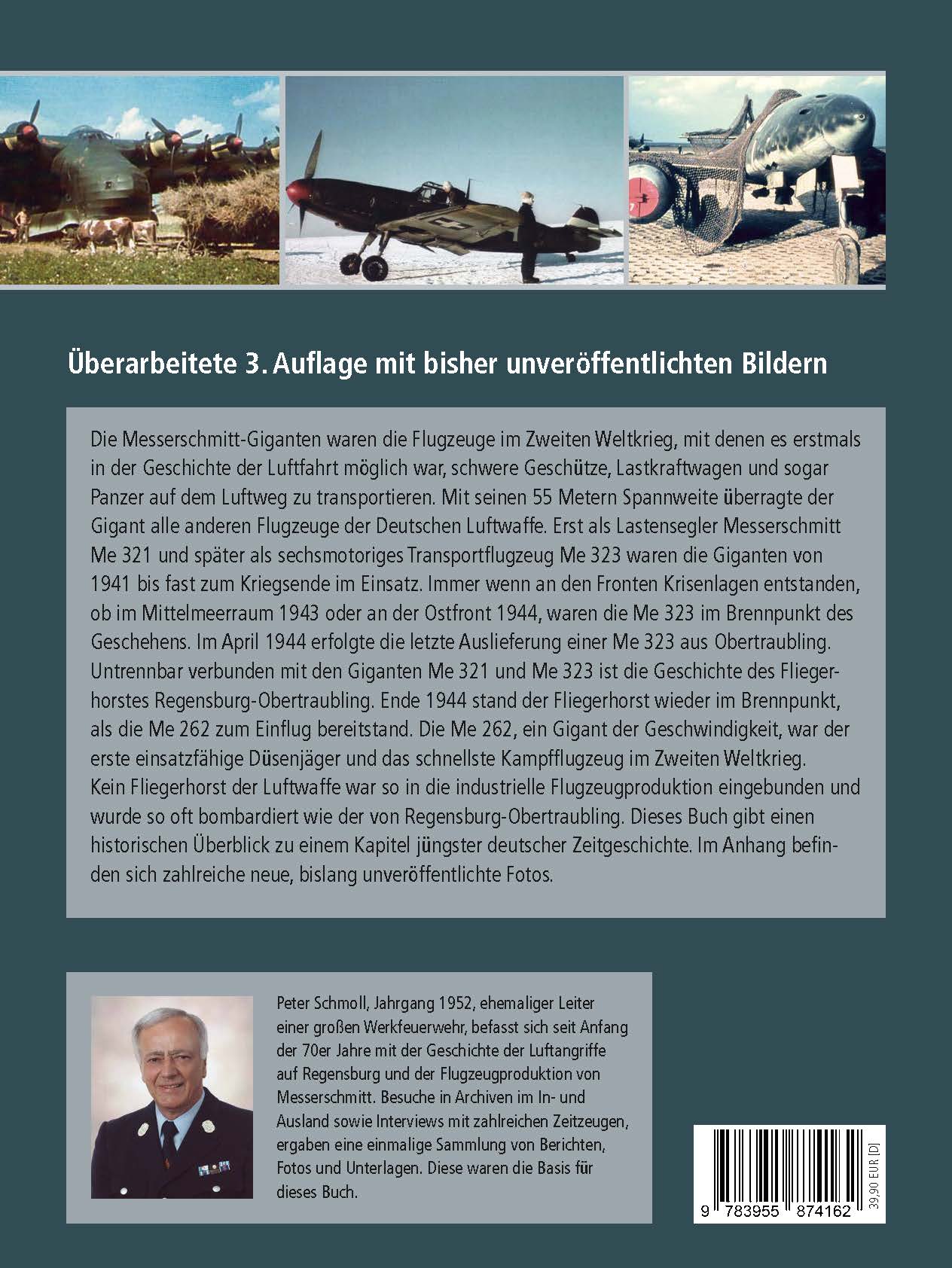 Die Messerschmitt-Giganten waren die Flugzeuge im Zweiten Weltkrieg, mit denen es erstmals in der Geschichte der Luftfahrt möglich war, schwere Geschütze, Lastkraftwagen und sogar Panzer auf dem Luftweg zu transportieren. Mit seinen 55 Metern Spannweite überragte der Gigant alle anderen Flugzeuge der Deutschen Luftwaffe. Erst als Lastensegler Messerschmitt Me 321 und später als sechsmotoriges Transportflugzeug Me 323 waren die Giganten von 1941 an, fast bis zum Kriegsende, im Einsatz. Immer wenn an den Fronten Krisenlagen entstanden, ob im Mittelmeerraum 1943 oder an der Ostfront 1944, waren die Me 323 im Brennpunkt des Geschehens. Im April 1944 erfolgte die letzte Auslieferung einer Me 323 aus Obertraubling. Untrennbar verbunden mit den Giganten Me 321 und Me 323 ist die Geschichte des Fliegerhorstes Regensburg-Obertraubling. Ende 1944 stand der Fliegerhorst wieder im Brennpunkt, als die Me 262 zum Einflug bereitstand. Die Me 262, ein Gigant der Geschwindigkeit, war der erste einsatzfähige Düsenjäger und das schnellste Kampfflugzeug im Zweiten Weltkrieg. Kein Fliegerhorst der Luftwaffe war so in die industrielle Flugzeugproduktion eingebunden und wurde so oft bombardiert wie der von Regensburg-Obertraubling. Dieses Buch gibt einen historischen Überblick zu einem Kapitel jüngster deutscher Zeitgeschichte. Im Anhang befinden sich zahlreiche neue, bislang unveröffentlichte Fotos.