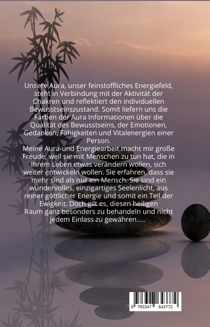 Unsere Aura, unser feinstoffliches Energiefeld, steht in Verbindung mit der Aktivität der Chakren und reflektiert den individuellen Bewusstseinszustand. Somit liefern uns die Farben der Aura Informationen über die Qualität des Bewusstseins, der Emotionen, Gedanken, Fähigkeiten und Vitalenergien einer Person.Meine Aura-und Energiearbeit macht mir große Freude, weil sie mit Menschen zu tun hat, die in ihrem Leben etwas verändern wollen, sich weiter entwickeln wollen. Sie erfahren, dass sie mehr sind als nur ein Mensch. Sie sind ein wundervolles, einzigartiges Seelenlicht, aus reiner göttlicher Energie und somit ein Teil der Ewigkeit. Doch gilt es, diesen heiligen Raum ganz besonders zu behandeln und nicht jedem Einlass zu gewähren...