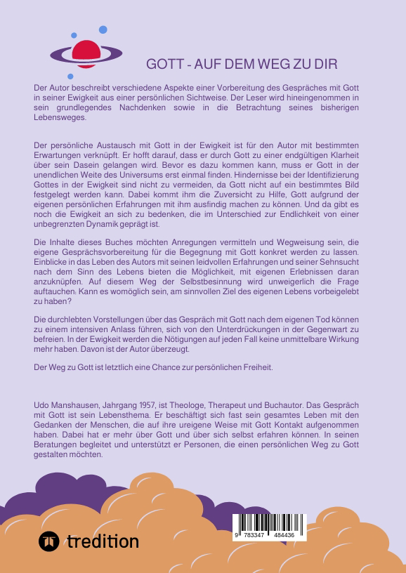 In diesem Buch geht es um verschiedene Aspekte der Vorbereitung des Gespräches mit Gott nach dem eigenen Tod. Im Mittelpunkt stehen die Erinnerungen an die eigenen leidvollen Erfahrungen des Autors. An diese können die Leser im Hinblick auf ihre Lebenserfahrungen anknüpfen, um diese in der Ewigkeit bei Gott mit ihm zu besprechen. Für eine solche Gesprächsvorbereitung ist es hilfreich, die eigenen Vorstellungen über Eigenschaften Gottes in den Blick zu nehmen. Diese werden die Gesprächsatmosphäre prägen.Natürlich sind die Erwartungen an ein Leben in der Unendlichkeit von großer Bedeutung. Darüber gilt es, sich mit Gott auszutauschen.Wer sich diesem Vorhaben stellt, wird zu einer intensiven Auseinandersetzung mit dem Sinn des Lebens und der Wirklichkeit des Sterbens geführt.Der Weg zu Gott ist verbunden mit der Chance zu einer persönlichen Freiheit, die bereits in der Gegenwart gelebt werden kann.