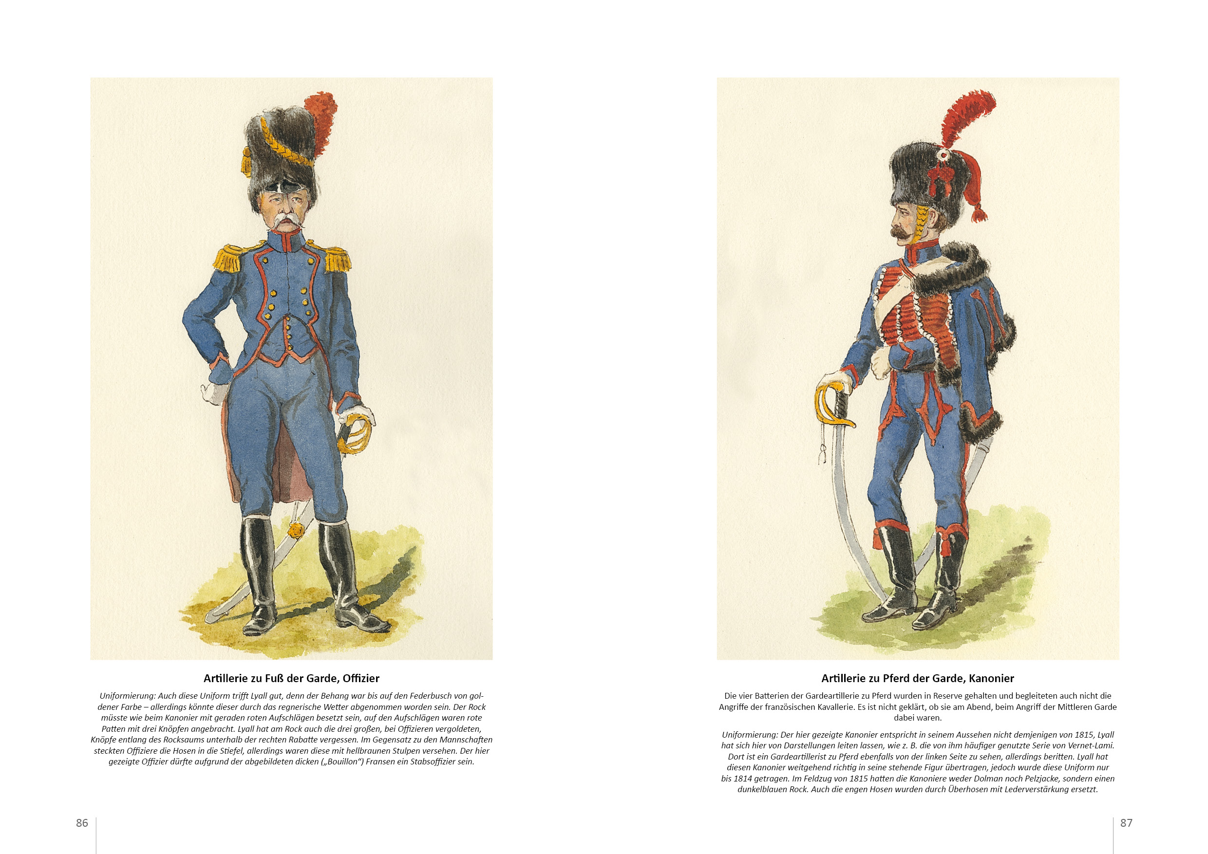 Mit dem abschließenden vierten Band wird die Reihe zu den "Uniformen der Armeen von Waterloo" beschlossen. Nachdem in den davor erschienenen Bänden die alliierte Seite vorgestellt wurde, befasst sich der vierte Teil mit deren Gegner - der französischen Armée du Nord unter dem Kommando Napoleons I. Diese Nordarmee bestand, trotz ihrer kurzen Existenz nach Rückkehr Napoleons auf den Kaiserthron Frankreichs, aus zahlreichen erfahrenen Soldaten seiner früheren Feldzüge, mit der Einschränkung, dass ihre Monturen aufgrund der Kürze der Mobilisierungszeitnicht immer den Statuten entsprachen.Die beiden Herausgeber Markus Gärtner und Markus Stein nutzen wie in den drei Vorbänden die Möglichkeit der von Charles Lyall angefertigten Tafeln, die dort präsentierten Uniformen gemäß aktuellem Kenntnisstand zum Aussehen französischer Truppen im Jahre 1815 zu bewerten. Durch die besondere Stellung, die vor allem in England der französischen Kaisergarde zugemessen wird, befassen sich zahlreiche Tafeln von Lyall mit Gardetruppen. Einige der dargestellten Einheiten waren jedoch schon vor 1815 aufgelöst worden, trotzdem haben sich die Herausgeber entschieden, diese in diesem Band mit einem kurzen Kommentar mitzuveröffentlichen.Wie in den anderen Bänden auch, runden eine Ordre de Bataille der Nordarmee sowie ergänzende Beschreibungen der Organisation und Uniformierung, der in den Niederlanden eingesetzten Truppenteile das visuelle Bild der Tafeln ab. Schließlich wird die im ersten Band begonnene und in den Folgebänden fortgeführte Darstellung der Schlacht von Waterloo wieder aufgegriffen und bis zum Ende, dem Rückzug der Franzosen vom Schlachtfeld, fortgeführt. Begleitet wird diese Beschreibung durch zwei weitere Karten aus dem Atlas von William Siborne zur History of the Waterloo Campaign.