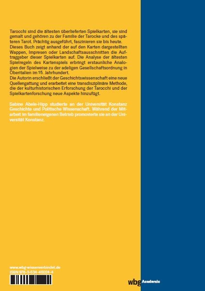 Tarocchi sind die ältesten überlieferten Spielkarten der Familie des Tarot oder Tarock. Dieses Buch ergründet mit einer neuen, transdisziplinären Methode anhand der Kartenmotive die Auftraggeber dieser gemalten Spielkarten. Die Analyse der ersten Spielregeln zeigt einige Gemeinsamkeiten mit der adeligen Gesellschaftsordnung ihrer Entstehungszeit.