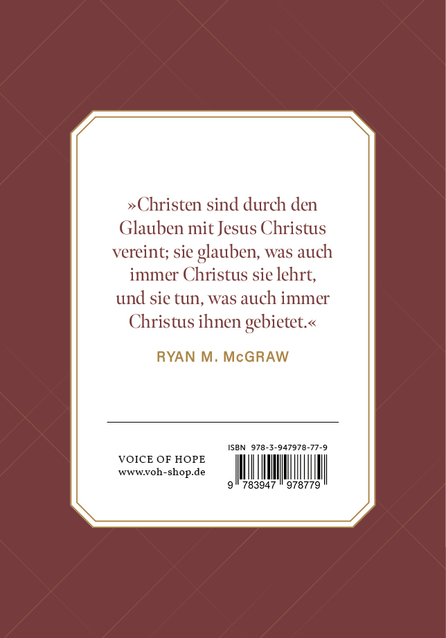 In diesem Buch legt Ryan McGraw dar, was es bedeutet, ein Christ zu sein, und zwar in Bezug auf das, was man glaubt, was man erlebt und was man tut – ein vollwertiges Christentum mit Kopf, Herz und Händen. Wenn du dich fragst, was es bedeutet, Jesus Christus nachzufolgen, wenn du mit der Frage ringst, ob du wirklich errettet bist; wenn du als Christ wachsen willst, indem du zu den Grundlagen zurückkehrst, oder wenn du anderen diesbezüglich helfen willst, findest du hier einfache und klare Antworten aus der Heiligen Schrift.