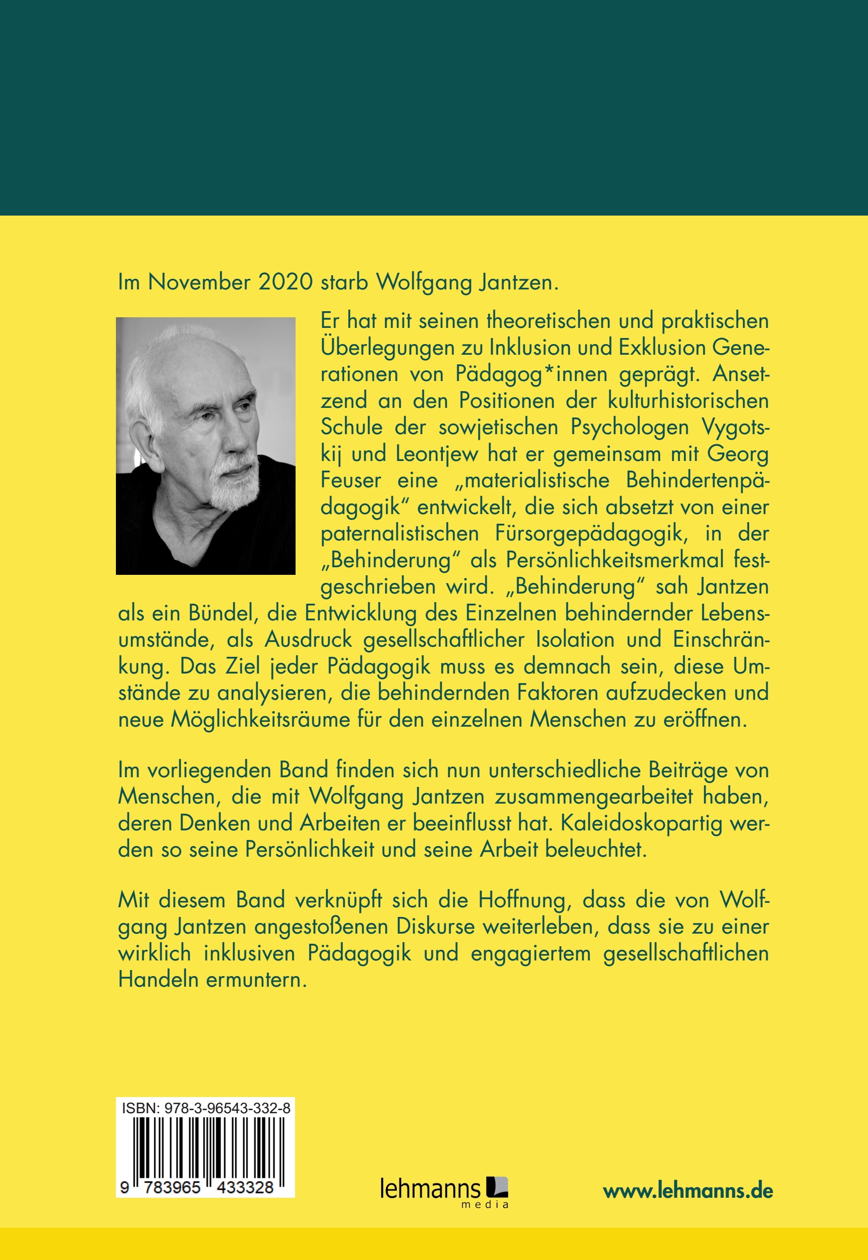 Im November 2020 starb Wolfgang Jantzen.Er hat mit seinen theoretischen und praktischen Überlegungen zu Inklusion und Exklusion Generationen von Pädagog*innen geprägt. Ansetzend an den Positionen der kulturhistorischen Schule der sowjetischen Psychologen Vygotskij und Leontjew hat er gemeinsam mit Georg Feuser eine "materialistische Behindertenpädagogik" entwickelt, die sich absetzt von einer paternalistischen Fürsorgepädagogik, in der "Behinderung" als Persönlichkeitsmerkmal festgeschrieben wird. "Behinderung" sah Jantzen als ein Bündel, die Entwicklung des Einzelnen behindernder Lebensumstände, als Ausdruck gesellschaftlicher Isolation und Einschränkung. Das Ziel jeder Pädagogik muss es demnach sein, diese Umstände zu analysieren, die behindernden Faktoren aufzudecken und neue Möglichkeitsräume für den einzelnen Menschen zu eröffnen.Im vorliegenden Band finden sich nun unterschiedliche Beiträge von Menschen, die mit Wolfgang Jantzen zusammengearbeitet haben, deren Denken und Arbeiten er beeinflusst hat. Kaleidoskopartig werden so seine Persönlichkeit und seine Arbeit beleuchtet. Mit diesem Band verknüpft sich die Hoffnung, dass die von Wolfgang Jantzen angestoßenen Diskurse weiterleben, dass sie zu einer wirklich inklusiven Pädagogik und engagiertem gesellschaftlichen Handeln ermuntern.