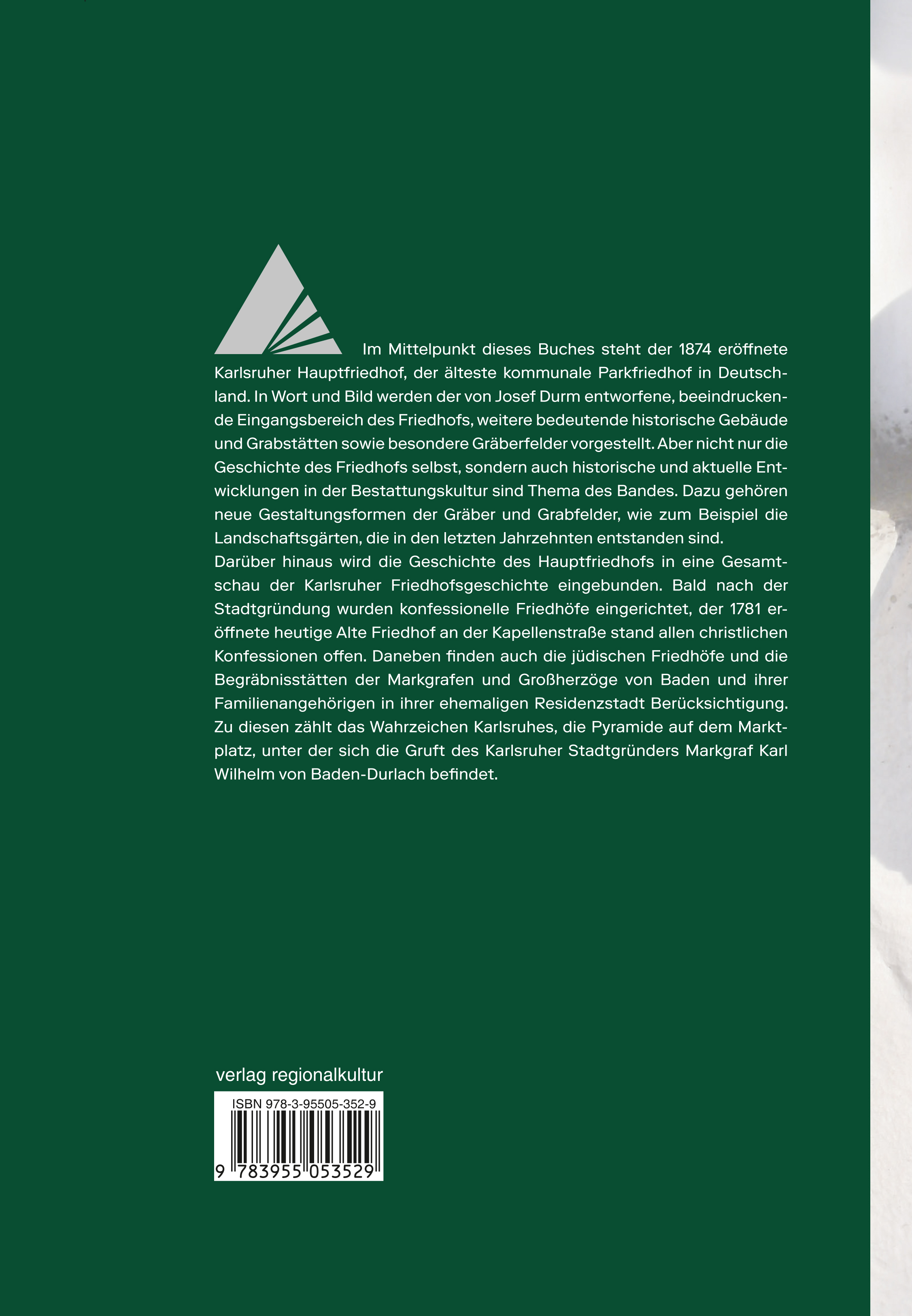 Im Mittelpunkt dieses Buches steht der 1874 eröffnete Karlsruher Hauptfriedhof, der älteste kommunale Parkfriedhof in Deutschland. In Wort und Bild werden der von Josef Durm entworfene, beeindruckende Eingangsbereich des Friedhofs, weitere bedeutende historische Gebäude und Grabstätten sowie besondere Gräberfelder vorgestellt. Aber nicht nur dieGeschichte des Friedhofs selbst, sondern auch historische und aktuelle Entwicklungen in der Bestattungskultur sind Thema des Bandes. Dazu gehören neue Gestaltungsformen der Gräber und Grabfelder, wie zum Beispiel die Landschaftsgärten, die in den letzten Jahrzehnten entstanden sind. Darüber hinaus wird die Geschichte des Hauptfriedhofs in eine Gesamtschauder Karlsruher Friedhofsgeschichte eingebunden. Bald nach der Stadtgründung wurden konfessionelle Friedhöfe eingerichtet, der 1781 eröffnete heutige Alte Friedhof an der Kapellenstraße stand allen christlichen Konfessionen offen. Daneben finden auch die jüdischen Friedhöfe und die Begräbnisstätten der Markgrafen und Großherzöge von Baden und ihrer Familienangehörigen in ihrer ehemaligen Residenzstadt Berücksichtigung. Zu diesen zählt das Wahrzeichen Karlsruhes, die Pyramide auf dem Marktplatz, unter der sich die Gruft des Karlsruher Stadtgründers Markgraf Karl Wilhelm von Baden-Durlach befindet.