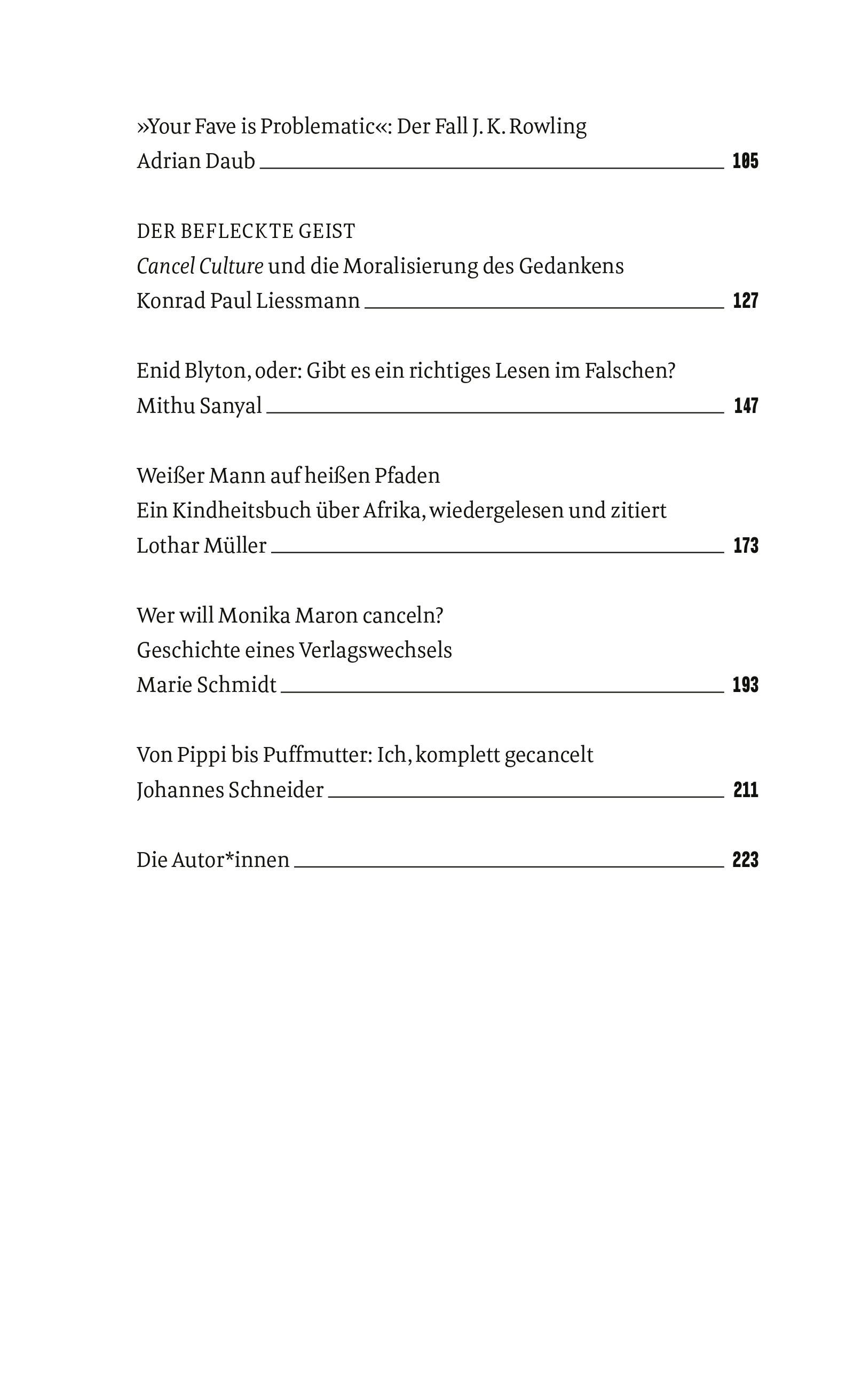 Mit Beiträgen von Asal Dardan, Adrian Daub, Hanna Engelmeier, Jürgen Kaube, Konrad Paul Liessmann, Ijoma Mangold, Lothar Müller, Mithu Sanyal, Marie Schmidt, Johannes Schneider, Anna-Lena Scholz und Daniela Strigl.