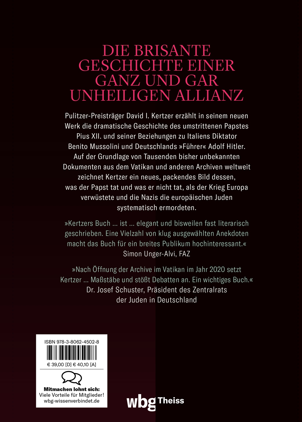 »Nach Öffnung der Archive im Vatikan im Jahr 2020 setzt Kertzer ... Maßstäbe und stößt Debatten an. Ein wichtiges Buch.« Dr. Josef Schuster, Präsident des Zentralrats der Juden in Deutschland
