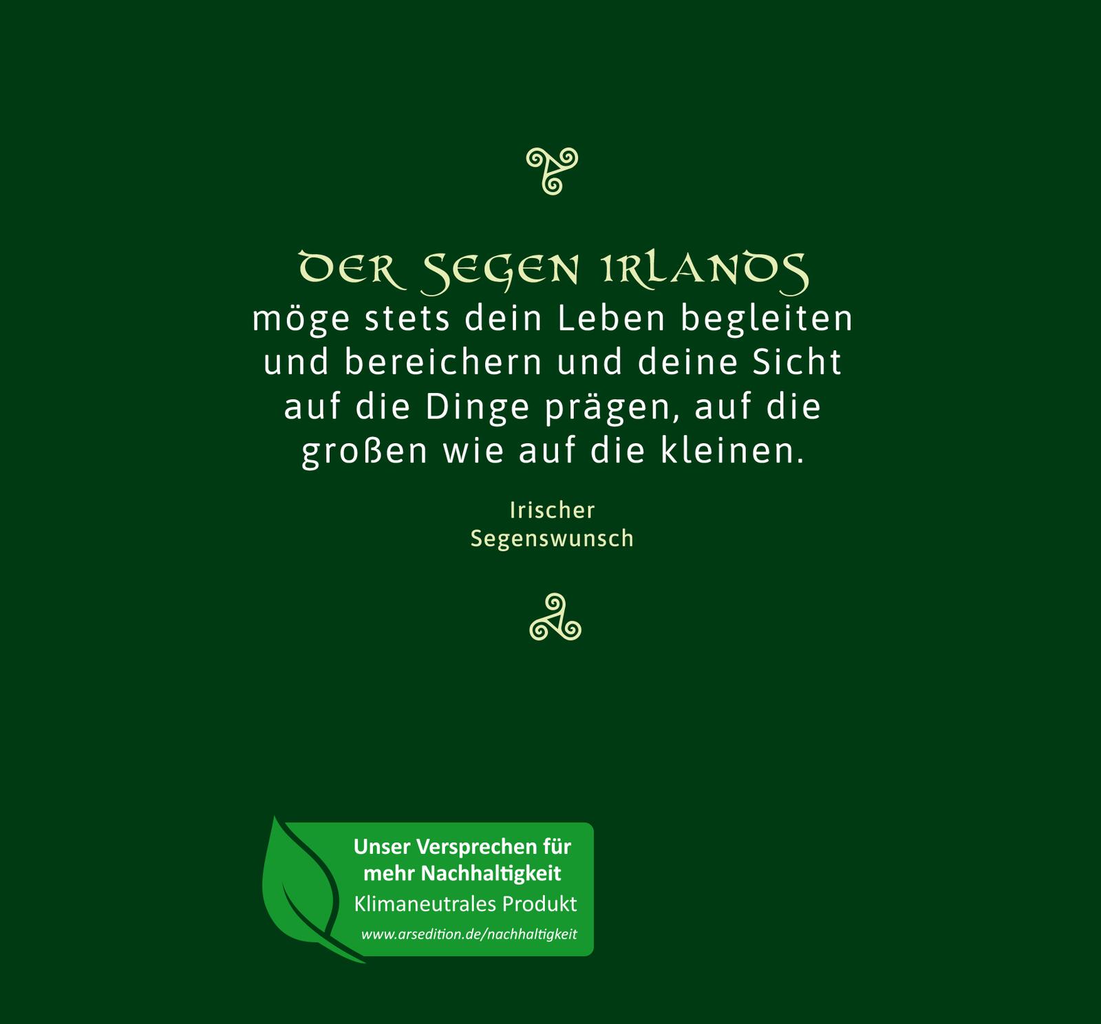 Irische Segenswünsche wurden über Jahrhunderte aus keltischen und frühchristlichen Traditionen überliefert und üben seit jeher einen unwiderstehlichen Charme aus. Die einfache, aber bildhaft-poetische Sprache, in der ganz alltägliche Themen mit einem Segen oder Wunsch in Verbindung gebracht werden, sprechen uns aus dem Herzen und schenken Hoffnung und Inspiration für jede Lebenslage. In diesem Aufstellbuch finden sich Segenswünsche kombiniert mit stimmungsvollen Irland-Fotografien und jede Seite lädt dazu ein, sich vom Zauber der Grünen Insel immer wieder aufs Neue inspirieren zu lassen.
