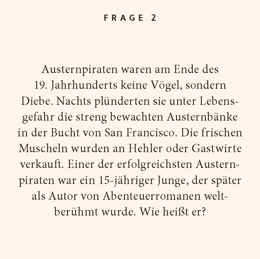| Schlagworte | Freibeuter • Piraten • Quiz • Ratespiel • Seeräuber • Spiel • Themen-Quiz |