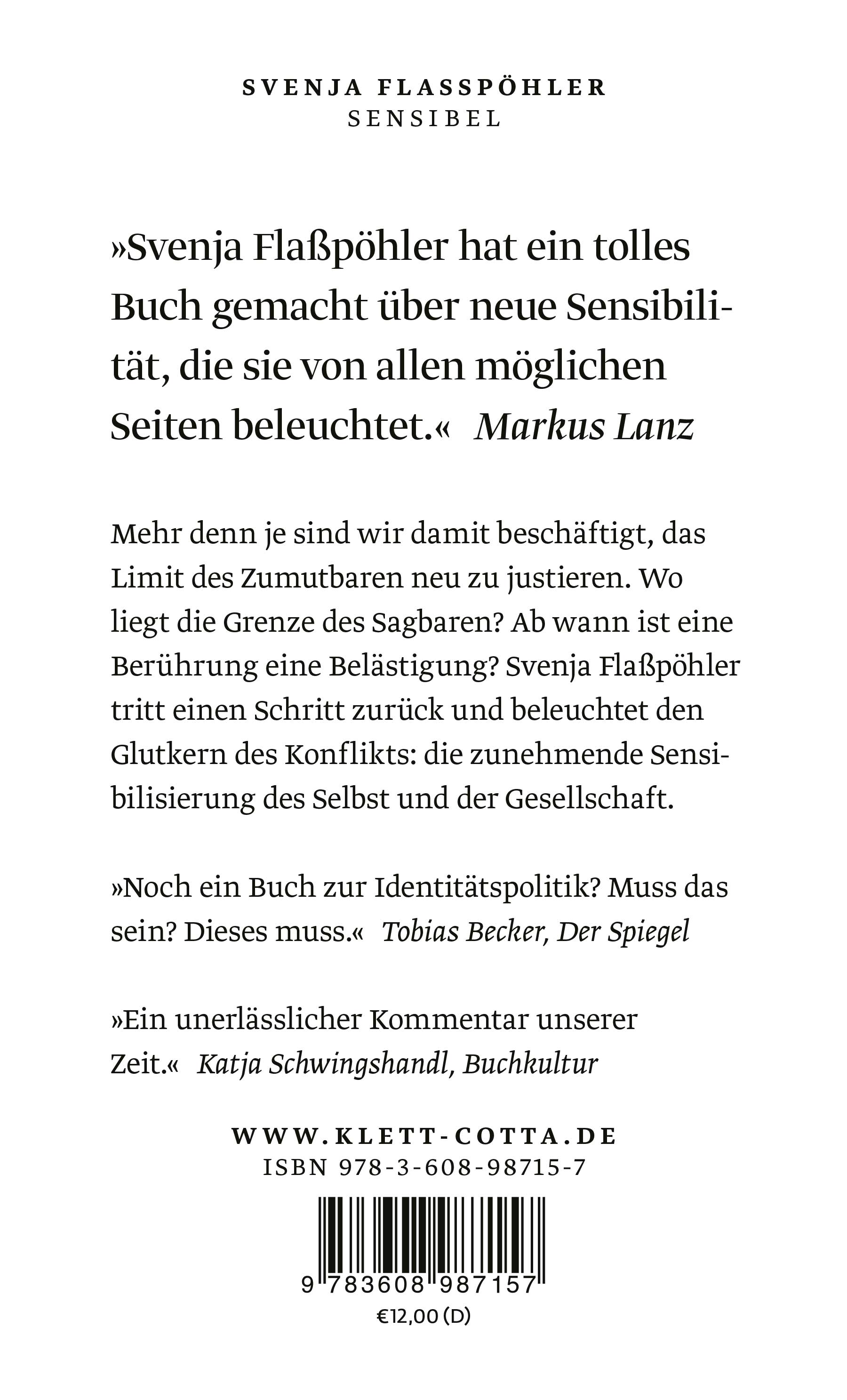 »Sensibilität ist eine zivilisatorische Errungenschaft. Im Kampf um Anerkennung unterdrückter Gruppen spielt sie eine wichtige Rolle. Aber sie kann auch vom Progressiven ins Regressive kippen. Über diese Dialektik müssen wir nachdenken, um die gesellschaftliche Polarisierung zu überwinden.« Svenja Flaßpöhler
