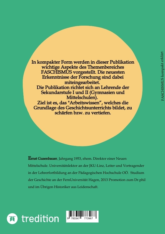 Dieses Buch stellt jene beiden Protagonisten, Mussolini und Hitler, in den Mittelpunkt, denen es im Gegensatz zu ihren Epigonen tatsächlich gelang, ein faschistisches Herrschaftssystem auf lange Zeit in Europa zu etablieren. Die Veröffentlichung richtet sich vorrangig an Lehrende der Sekundarstufe I und II (Gymnasien und Mittelschulen). Ziel ist es, das "Arbeitswissen", welches die Grundlage jedes Geschichtsunterrichtes bildet, zu schärfen bzw. zu vertiefen.Herzlich willkommen sind freilich aber alle an diesem Thema und an Geschichte interessierte Leserinnen und Leser.