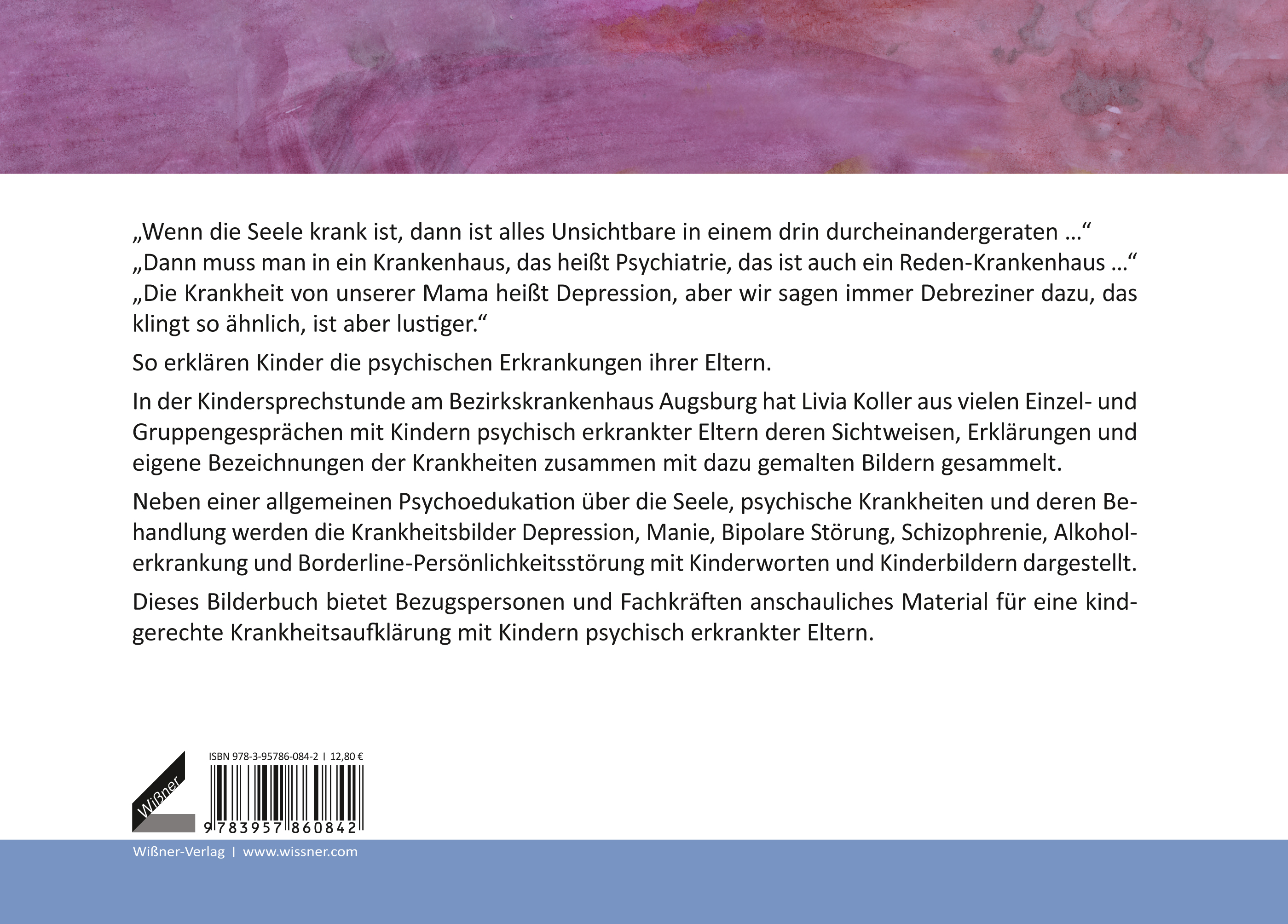 In der Kindersprechstunde am Bezirkskrankenhaus Augsburg hat Livia Koller aus vielen Einzel- und Gruppengesprächen mit Kindern psychisch erkrankter Eltern deren Sichtweisen, Erklärungen und eigene Bezeichnungen der Krankheiten zusammen mit dazu gemalten Bildern gesammelt.