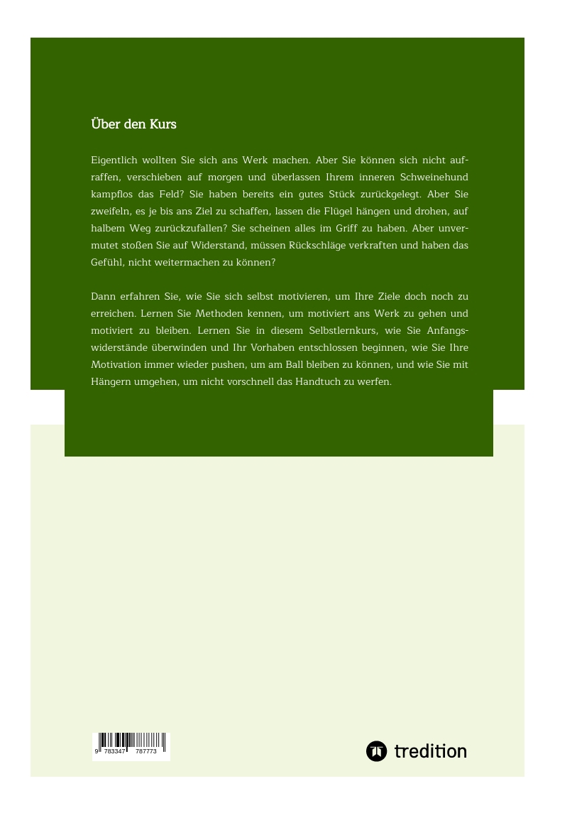 | Schlagworte | Absicht • Absichten • anfangswiderstand • anfangswiderstände • anfangswiderstände überwinden • anfangswiderstand überwinden • Antrieb • Aufschieben • Aufschieberitis • Buch • Coaching • Denkmethode • Denkmethoden • denktechnik • Denktechniken • durchhalten • Durchhaltevermögen • eBook • handeln können • Handlung • Handlungskompetenz • handlungswiderstand • handlungswiderstände • Hilfe • hilfe bei motivationsproblemen • inneren Schweinehund überwinden • Innerer Schweinehund • innere schweinehunde • innere schweinehunde überwinden • ins Handeln kommen • keine motivation haben • keine selbstmotivation haben • Kreativ • Kreativität • Kreativitätsmethode • Kreativitätsmethoden • Kreativitätstechnik • Kreativitätstechniken • Kreativitätstraining • Kreativmethode • Kreativmethoden • Kreativtechnik • Kreativtechniken • Kurs • Lebenshilfe • Lifecoaching • Mehr Motivation • mehr Selbstmotivation • Mentaltechnik • Mentaltechniken • Mentaltraining • Motivation • Motivation fördern • motivation haben • Motivationsprobleme • motiviert • motiviert sein • nicht genug motivation • nicht genug motivation haben • nicht genug selbstmotivation • nicht genug selbstmotivation haben • nicht ins handeln kommen • nicht motiviert • nicht motiviert sein • nicht selbstmotiviert sein • Persönlichkeitsentwicklung • Plan • Pläne • pläne umsetzen • Pläne verfolgen • plan umsetzen • plan verfolgen • probleme mit motivation • probleme mit selbstmotivation • probleme motivation • probleme selbstmotivation • Ratgeber • Selbstcoaching • Selbstkompetenz • Selbstlernkurs • Selbstmotivation • selbstmotivation fördern • selbstmotivation haben • selbstmotiviert • selbstmotiviert sein • Selfcare • Seminar • sich mehr motivation wünschen • sich mehr selbstmotivation wünschen • sich motivieren können • Tat • Traum • Träume • Träume erfüllen • Traum erfüllen • Träume verwirklichen • Traum verwirklichen • Vorhaben • Vorhaben umsetzen • Vorhaben verfolgen • Widerstand • Widerstände • Widerstände überwinden • widerstand überwinden • wie bekomme ich mehr motivation • wie kann ich mehr motivation bekommen • wie kann ich mehr motivation entwickeln • wie kann ich mehr motivation gewinnen • wie kann ich mehr selbstmotivation bekommen • wie kann ich mehr selbstmotivation entwickeln • wie kann ich mehr selbstmotivation haben • wie kann ich meine motivation fördern • wie kann ich meine selbstmotivation fördern • wie kann ich motivierter sein • wie kann ich motivierter werden • wie werde ich motivierter • Willenskraft • Workshop • Wunsch • Wünsche • Wünsche erfüllen • Wunsch erfüllen • Wünsche verwirklichen • wunsch verwirklichen • Ziel • Ziele • Ziele erreichen • Ziel erreichen • Zielerreichung |