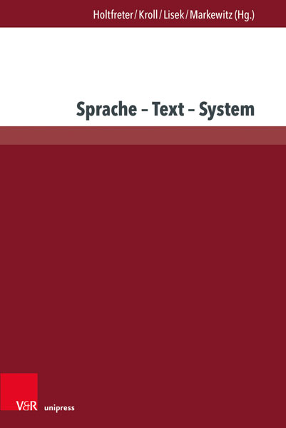 In the course of her scientific career, Christina Gansel has published contributions on a wide variety of linguistic issues; from her beginnings in grammar research, to research in the context of the semantics of verbs, to comprehensive work in the field of text linguistics. As diverse and heterogeneous as these fields of work may seem at first, the concept of system can be productively related to all of them. Christina Gansel's research topics are now to be productively connected within the framework of a Festschrift, whereby the text-language-system context is to serve as a unifying bracket.