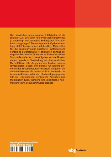 Die Entwicklung argumentativer Fähigkeiten ist ein zentrales Ziel des Ethik- und Philosophieunterrichts, ja überhaupt ein zentrales Bildungsziel. Wie aber kann das gelingen? Die vorliegende Aufgabensammlung bietet Lehrpersonen reichhaltige Materialien für die spiralcurricular angelegte, systematische Förderung argumentativer Fähigkeiten anhand exemplarischer Inhalte. Orientiert an klaren fachlichen Standards finden sich hier Aufgaben auf vier Niveaustufen, jeweils in Verbindung mit übersichtlichen Merkblättern. Die Aufgaben der beiden unteren Niveaustufen lassen sich bereits für jüngere Lernende der Sekundarstufen einsetzen, Aufgaben der obersten Niveaustufe richten sich an Lernende der Abschlussklassen oder der Studieneingangsphase. Für die Lehrpersonen werden die Aufgaben und Merkblätter durch fachliche und didaktische Kommentare sowie Lösungshinweise ergänzt.