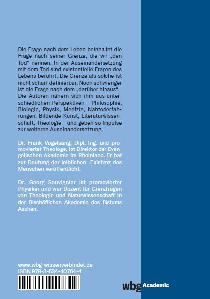 Die Autoren nähern sich ihm aus unterschiedlichen Perspektiven - Philosophie, Biologie, Physik, Medizin, Nahtoderfahrungen, Bildende Kunst, Literaturwissenschaft, Theologie - und geben so vielschichtige Impulse zur weiteren Auseinandersetzung.