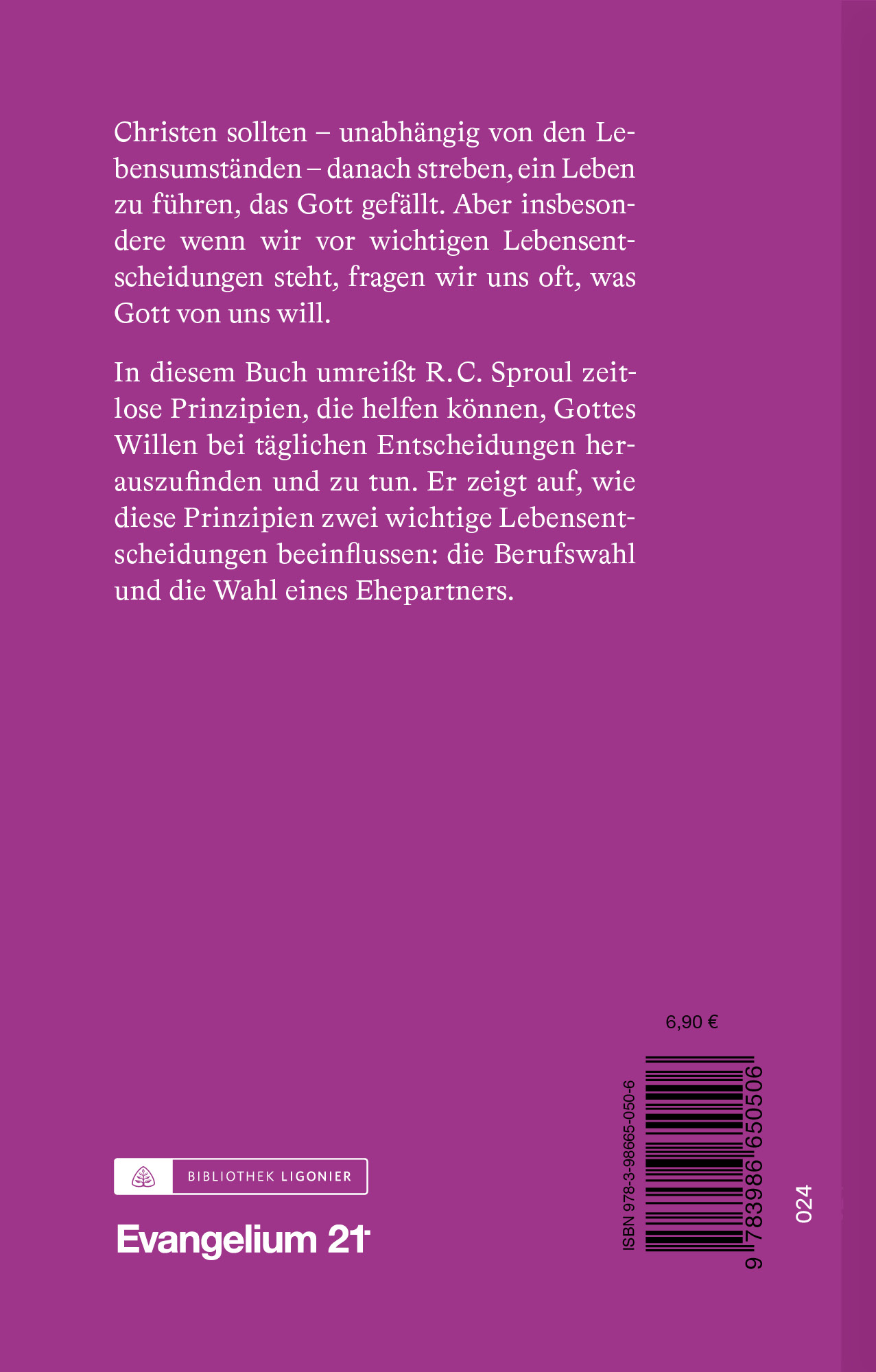 In diesem Buch umreißt R.C. Sproul zeitlose Prinzipien, die helfen können, Gottes Willen bei täglichen Entscheidungen herauszufinden und zu tun. Er zeigt auf, wie diese Prinzipien zwei wichtige Lebensentscheidungen beeinflussen: die Berufswahl und die Wahl eines Ehepartners.