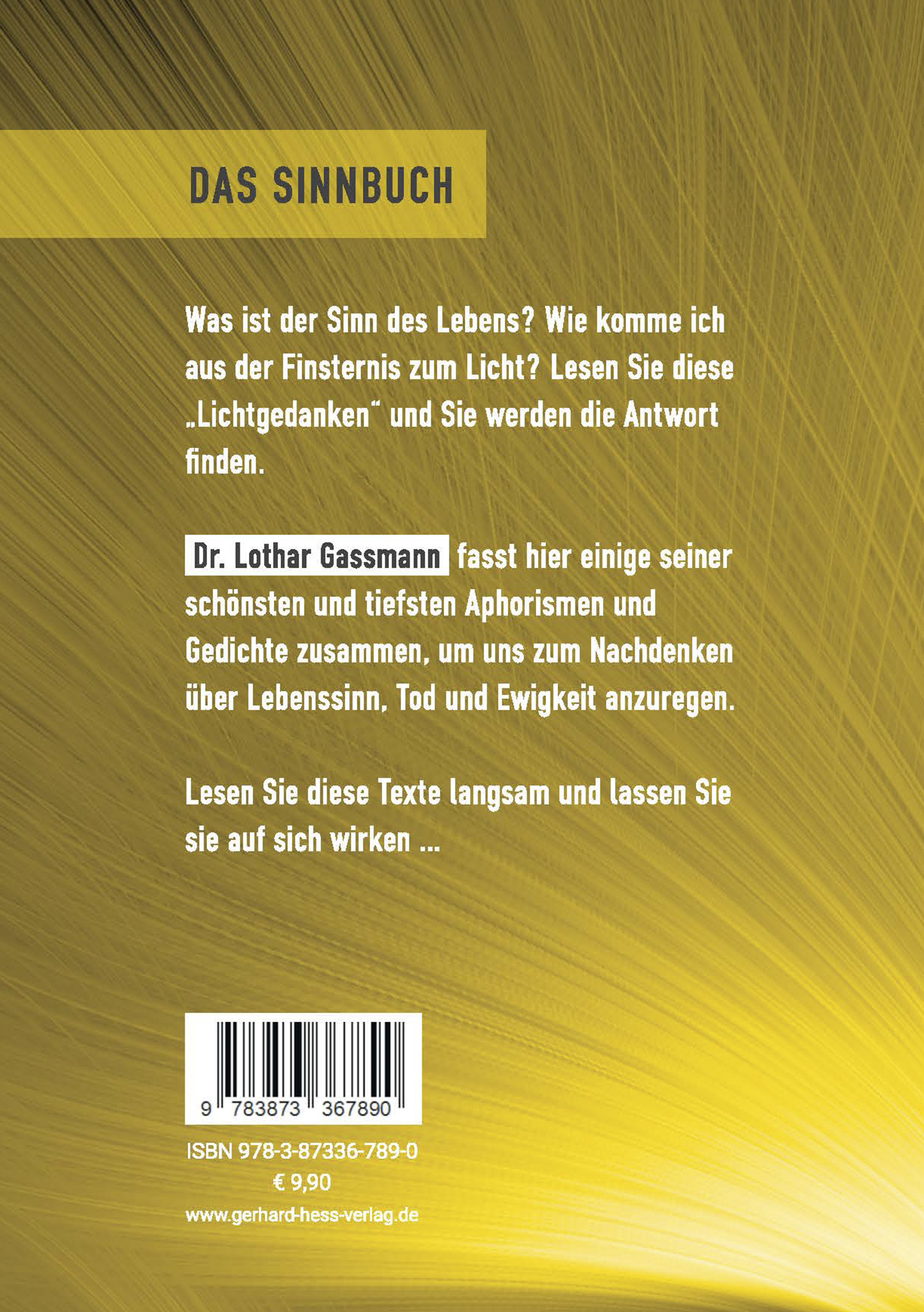 Was ist der Sinn des Lebens? Wie komme ich aus der Finsternis zum Licht? Lesen Sie diese Lichtgedanken und Sie werden die Antwort finden. Der Autor fasst hier einige seiner schönsten und tiefsten Aphorismen und Gedichte zusammen, um uns zum Nachdenken überlebenssinn Tod und Ewigkeit anzuregen. Dr. Lothar Gassmann ist Theologe und Prediger einer freikirchlichen Gemeinde in Pforzheim. Die Verkaufszahl seiner über 200 veröffentlichten Bücher und Broschüren geht in die Hunderttausende. Sein YouTube-Kanal hat rund 8 Millionen Aufrufe und mehr als 25.000 Abonnenten.