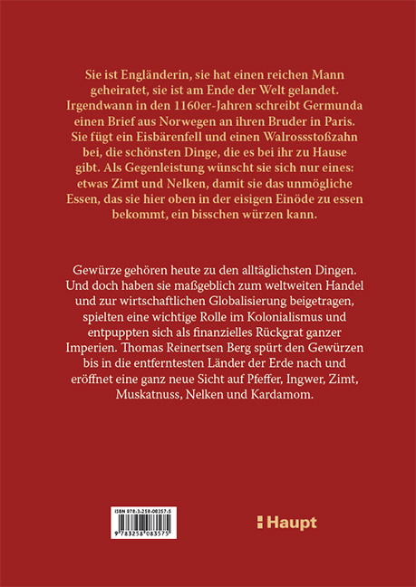Wie die Gewürzrouten zur Entstehung des Welthandels führten.Edle Gewürze, die die Welt veränderten.Reich bebildertes Lesevergnügen eines preisgekrönten Sachbuchautors.Gewürze gehören im Grunde zu den alltäglichsten Dingen, die es gibt. Und doch sind sie zu den am meisten gehandelten Waren geworden: Sie haben maßgeblich zum weltweiten Handel und zur wirtschaftlichen Globalisierung beigetragen, spielen eine wichtige Rolle im Kolonialismus und entpuppten sich als finanzielles Rückgrat ganzer Imperien. Sie haben kulturelle Entwicklungen angestoßen und prägen unser Leben bis in unsere Kochtöpfe. Thomas Reinertsen Berg spürt den Handelswegen der Gewürze bis in die entferntesten Länder der Erde nach und erzählt von ihren unbekannten und bemerkenswerten Geschichten.
