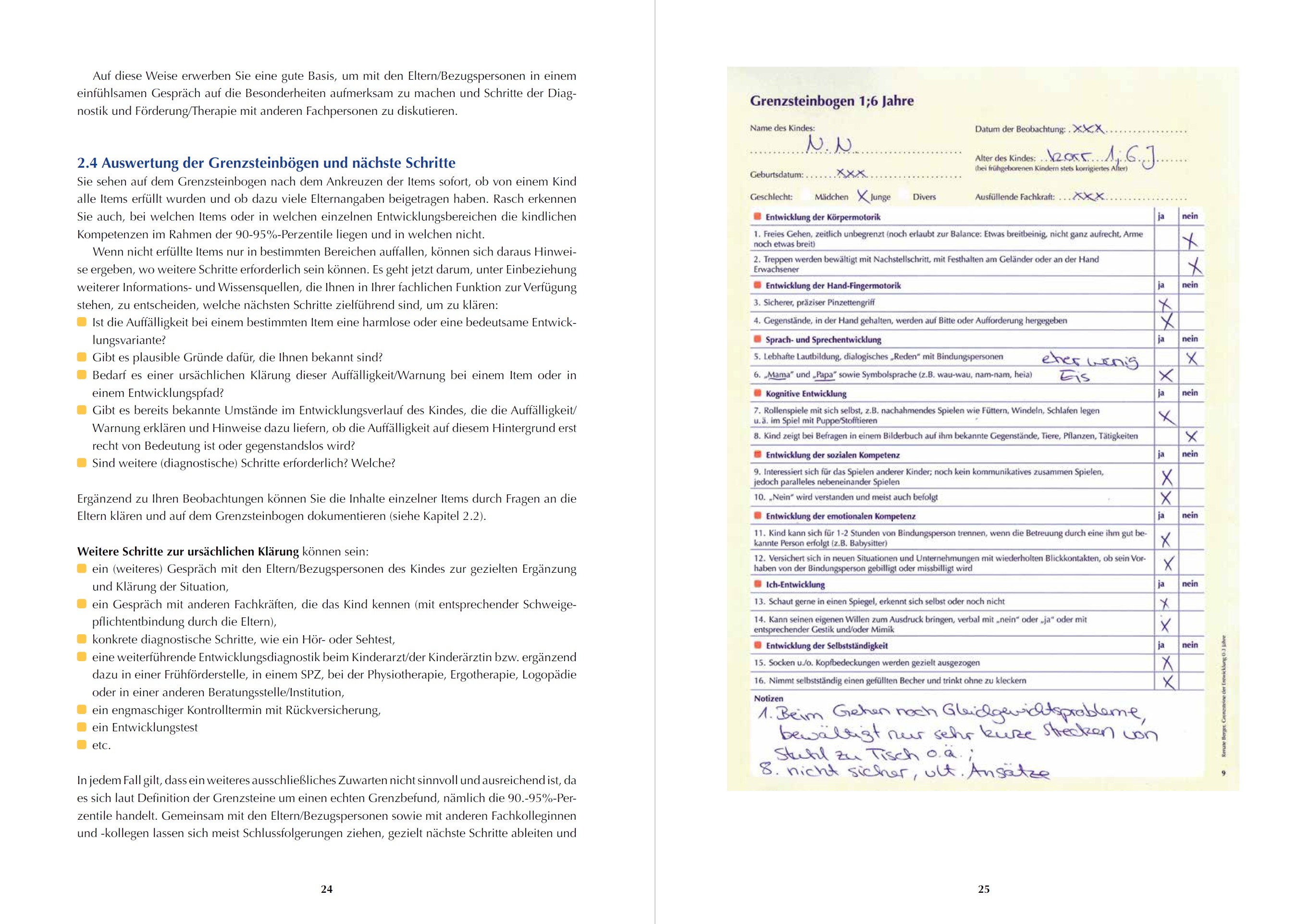 Die Grenzsteinbögen ermöglichen auch eine einfache Dokumentation der gezeigten Fähigkeiten/Fertigkeiten eines Kindes.