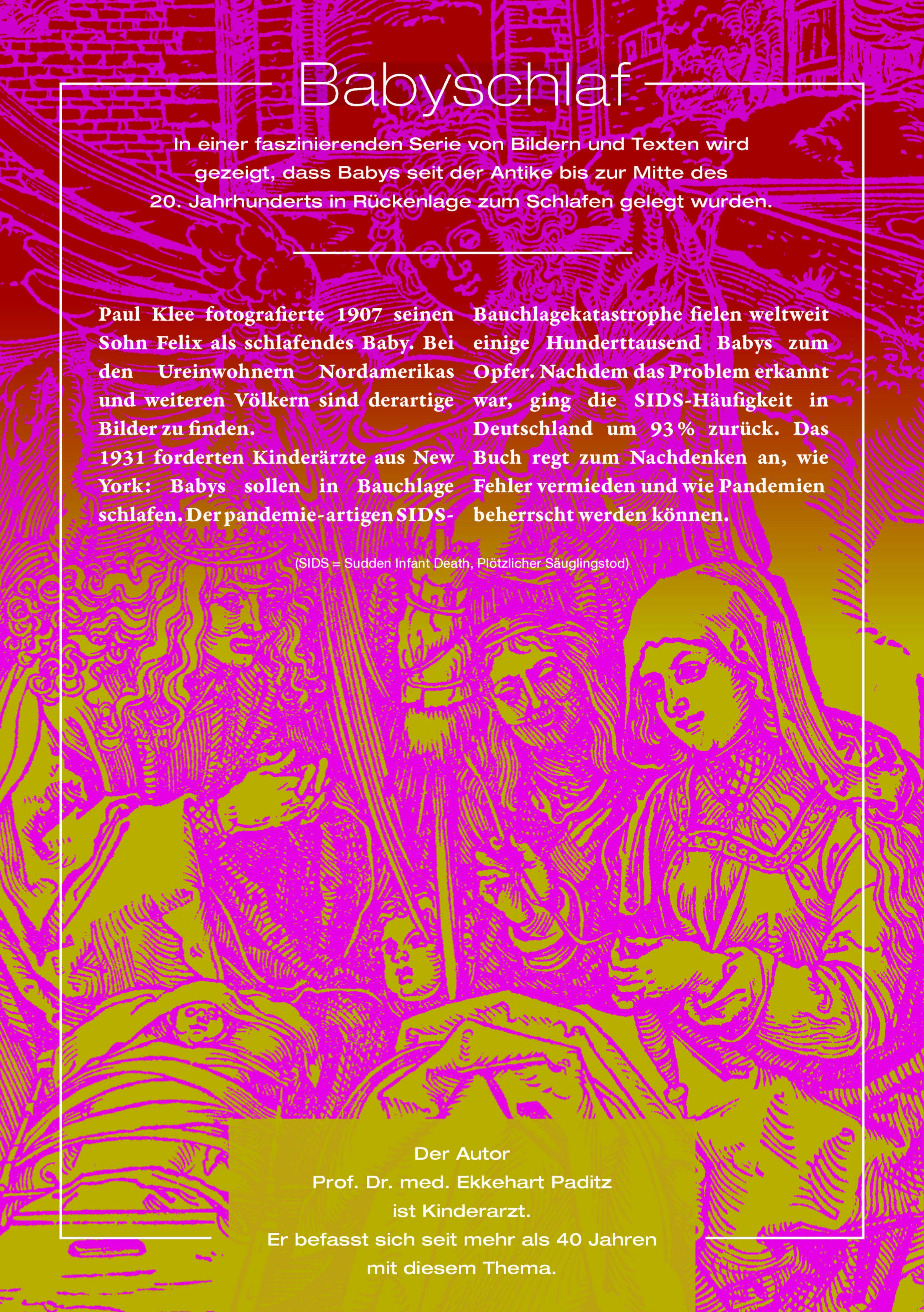 Paul Klee fotografierte seinen Sohn Felix 1907 in München als in Rückenlage schlafendes Baby. Prinz Edward Herzog von Kent schlummerte 1936 in seinem Kinderwagen ebenfalls in Rückenlage, wie ein erstmals publiziertes Foto zeigt. Der Autor zeigt anhand zahlreicher Dokumente aus Lehrbüchern, Ratgebern, Grafiken, Gemälden und Fotografien, dass die Rückenlage als Schlafposition von Säuglingen tradiertes Pflegeverhalten darstellte, das seit der Antike über das Mittelalter bis in die Mitte des 20. Jahrhunderts gelehrt und praktiziert wurde.