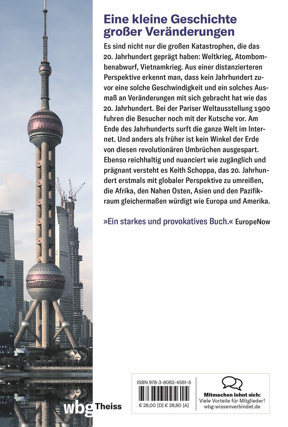 »R. Keith Schoppas Buch befasst sich mit dem Zeitraum von 1900 bis zur Gegenwart, mit seinen Extremen von Fortschritt und Tragödie, und es ist bemerkenswert, wie es eine so weitausgreifende globale Erzählung auf knappen 175 Seiten zusammenfasst. ... Dies ist ein starkes und provokatives Buch, das in jedem Universitätsseminar Eindruck machen wird.« EuropeNow