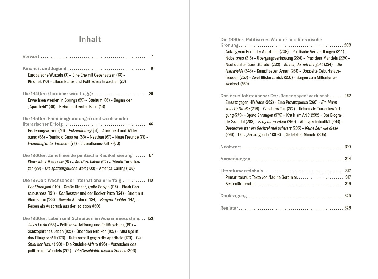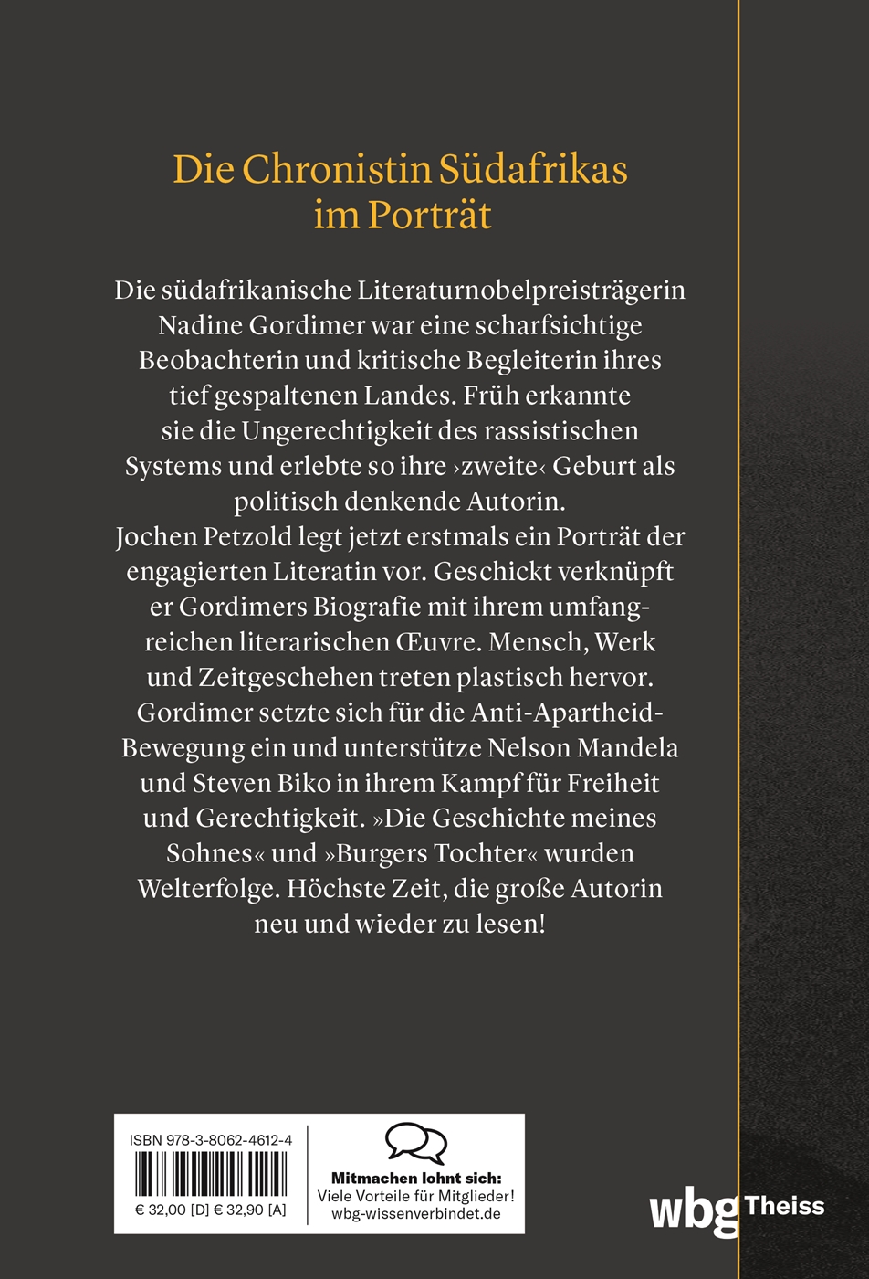 Die südafrikanische Literaturnobelpreisträgerin Nadine Gordimer (1923–2014) war eine scharfsichtige Beobachterin und kritische Begleiterin ihres tief gespaltenen Landes. Aufgewachsen in einer konservativen Kleinstadt nahe Johannesburg erkannte sie bald die Ungerechtigkeit des rassistischen Systems und erlebte ihre ›zweite Geburt‹ als politisch denkende Autorin.
