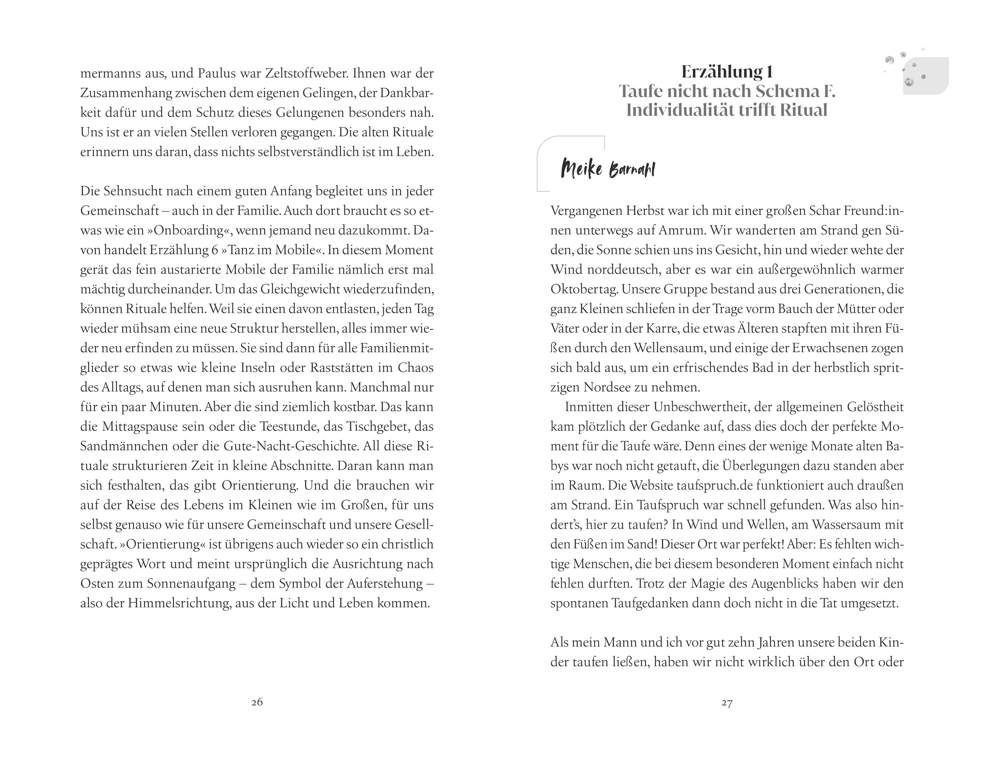 Meike Barnahl, geb. 1979, leitet nach vielen Jahren als Gemeindepastorin heute die Ritualagentur st. moment. Gemeinsam mit Emilia Handke und weiteren Kompliz*innen macht sie Ernst in Sachen Kirche der Zukunft. Ob Elbstrand oder Reeperbahn – als Pop Up Church sind sie dort unterwegs, wo echte Menschen echte Fragen ans Leben stellen und ehrliche Antworten erwarten.