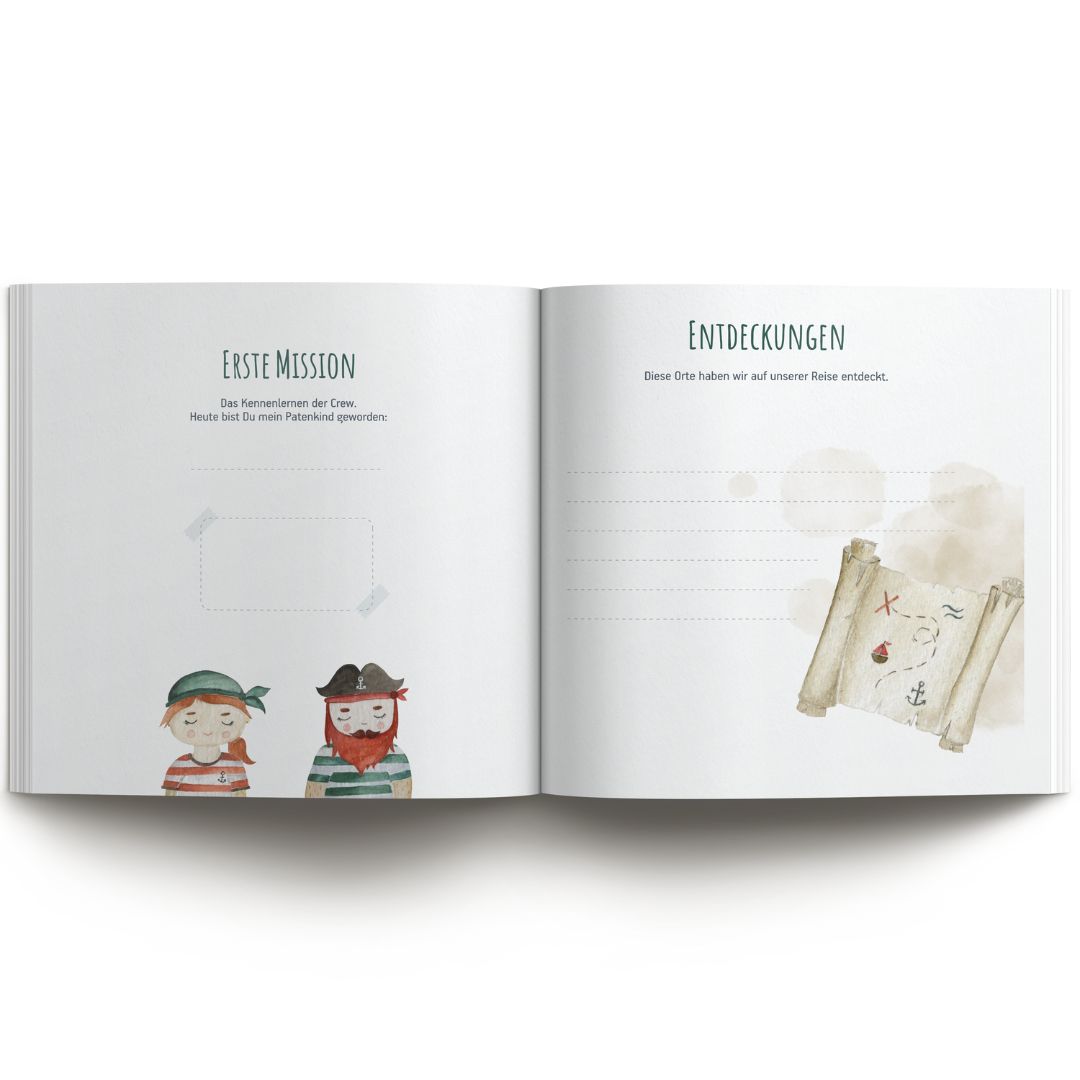 Du bist Patenonkel oder Patentante geworden und suchst nach einem Erinnerungsbuch für die gemeinsamen Abenteuer, die Du und Dein Patenkind erleben werdet? Dann könnte Patenkind Ahoi! genau das richtige Geschenk für Dich sein. Egal, ob direkt zur Taufe, zum Geburtstag oder mit einem Jahr; dieses Erinnerungsalbum bietet Dir auf 48 liebevoll illustrierten Seiten die Möglichkeit, die eigenen Abenteuer festzuhalten und Schnappschüsse als Schatz aufzubewahren sowie ganz viel Platz für Flaschenpost-Nachrichten.Das Patenbuch hat viele leere Zeilen, damit Du es ganz individuell mit den gemeinsamen Momenten von Dir und Deinem Patenkind füllen kannst. So kannst Du den Raum für die 6 Flaschenpost-Nachrichten ganz individuell nutzen: Halte etwa das 1. Lebensjahr alle zwei Monate fest, notiere jedes Jahr eine Flaschenpost bis zur Einschulung oder schreibe alle drei Jahre bis zum 18. Geburtstag eine Mitteilung. Zusätzlich bieten Dir die verschiedenen Themenseiten wunderbare Inspiration, um das Gute und Herausfordernde Deiner Paten-Kind-Beziehung festzuhalten. Das Buch ist in seinen Motiven genderneutral und sowohl für Patenonkel als auch Patentante geeignet.