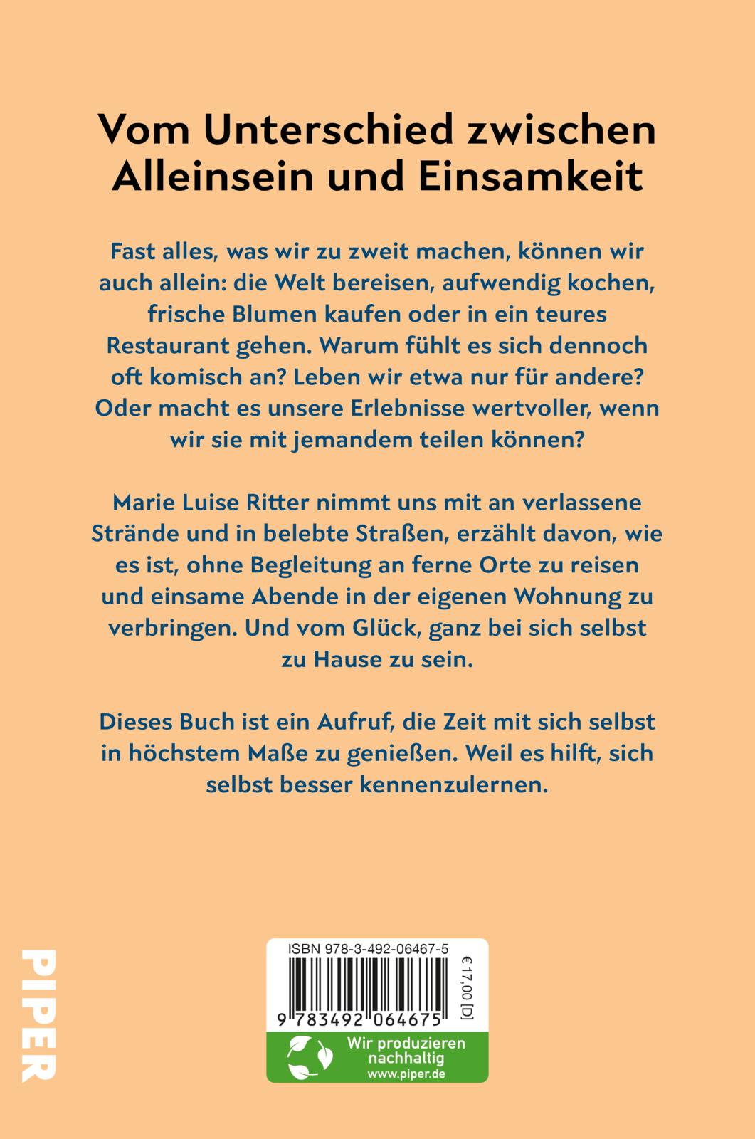 Marie Luise Ritter nimmt ihre Leser:innen mit an verlassene Strände und in belebte Straßen, erzählt von fernen Orten und einsamen Abenden in ihrer Wohnung. Und vom Glück, ganz bei sich selbst zu Hause zu sein. Dieses Buch ist ein Ausbruch aus gesellschaftlichen Rastern, ein großes »Ja« zu Mut und Eigenständigkeit.