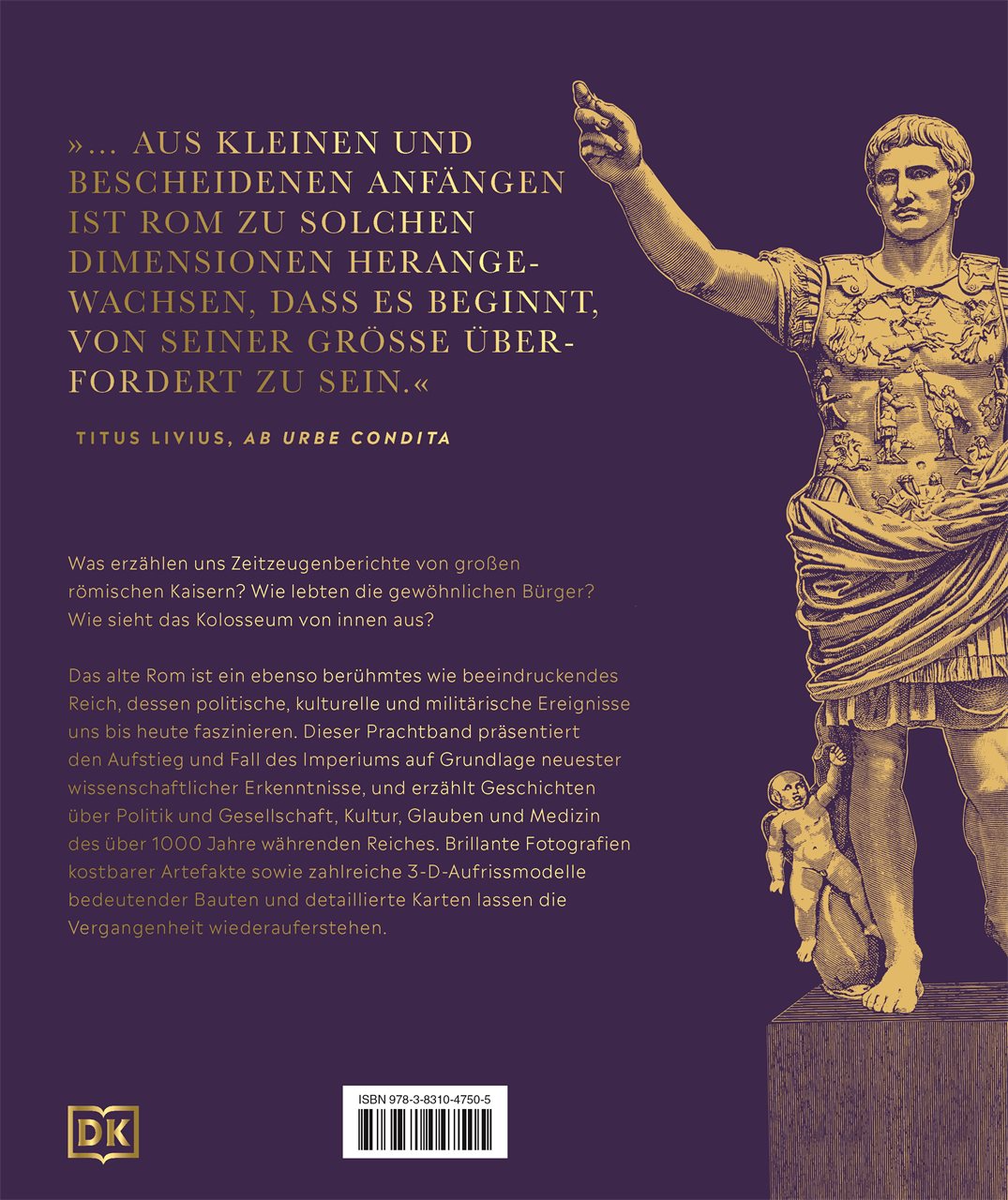 | Schlagworte | Agrippina • Altes Rom • Antikes Rom • Buch Altes Rom • Buch römisches Reich • Caracalla-Thermen • Cäsar • Cicero • Circus Maximus • Domus Aurea • Forum Romanum • Gallien • Gladiator • Götter • Horaz • Imperium • Kolosseum • Konstantin der Große • Konstantinopel • Latein • Marcus Aurelius • Nero • Ovid • Pantheon • Patrizier und Plebejer • Punische Kriege • Rom • Römische Geschichte • Römische Keramik • Römische Republik • Römisches Reich • Romulus und Remus • Senat • Tiberius • Toga • Trajanssäule • Triumphbogen • Vergil |
