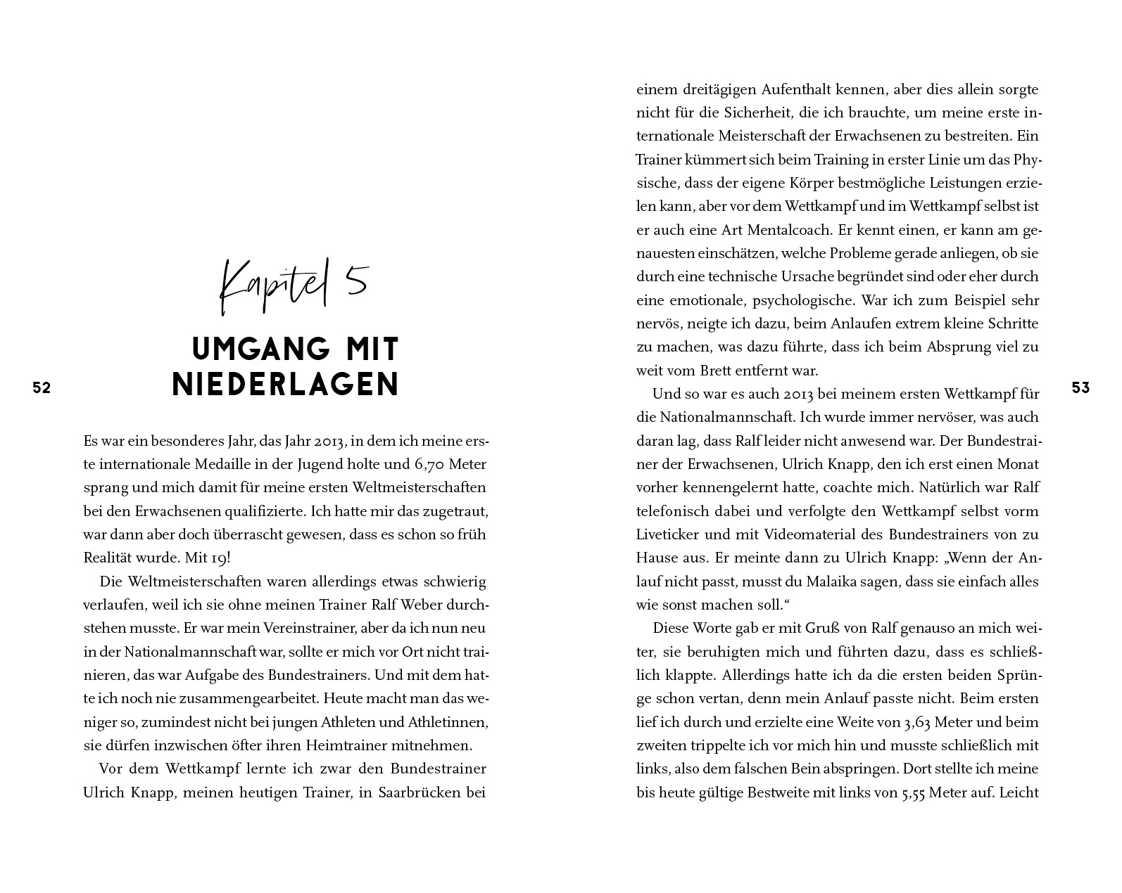| Schlagworte | Achtsamkeit • Biographie • Demenz • Ernährung • Gesundheit • Lebenshilfe • Leichtathletik • Malaika Mihambo • Maleika Mihambo • Meditation • Memoir • Mental Health • Olympiasiegerin • Psychologie • Ratgeber • Resilienz • Schlaf • Spiritualität • Spitzensport • Sport • Sportlerin des Jahres • Stressabbau • Stressbewältigung • Weitspringen • Weitsprung • Yoga |