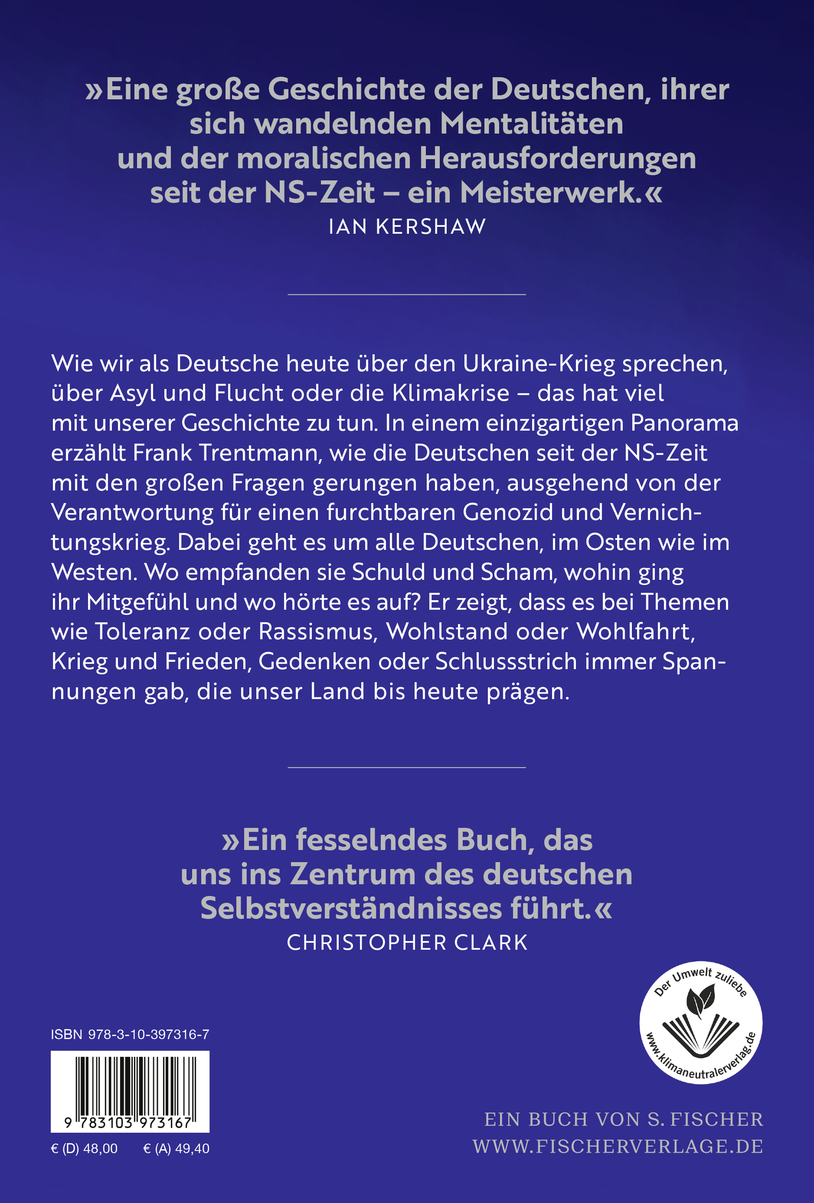 »Herausragend – Frank Trentmanns große Geschichte der sich wandelnden Mentalitäten der Deutschen und der moralischen Herausforderungen seit der NS-Zeit ist ein Meisterwerk«, schreibt Ian Kershaw