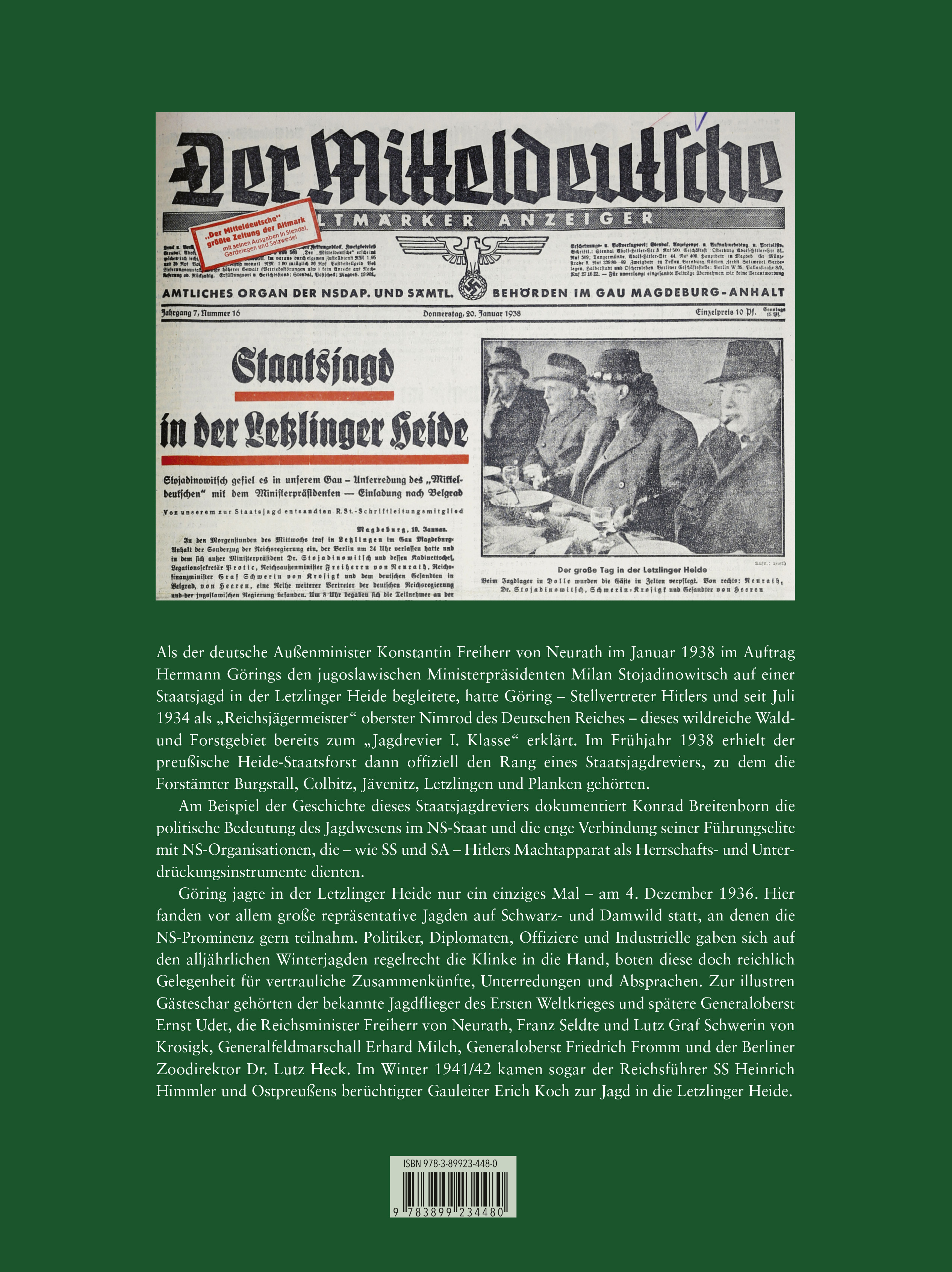 | Schlagworte | Deutsches Reich • Dr. Lutz Heck • Ernst Udet • Forstmeister Hellmuth Ramelow • Franz Seldte • Freiherr von Neurath • Gauleiter Erich Koch • Generalfeldmarschall Erhard Milch • Generaloberst Friedrich Fromm • Hermann Göring • Jagdrevier I. Klasse • Letzlinger Heide • Lutz Graf Schwerin von Krosigk • Reichsführer SS Heinrich Himmler • Reichsjägermeister • Staatsjagdrevier |
