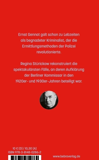 Regina Stürickow hat in Berlin Geschichte und Slavistik studiert. Nach einer Tätigkeit in der Lokalredaktion des Senders Freies Berlin ist sie seit 1993 als freie Publizistin in ihrer Heimatstadt tätig. Sie hat zahlreiche Bücher zur Berliner Geschichte veröffentlicht, tritt im Fernsehen regelmäßig als Expertin auf und schreibt populäre Magazinartikel zu historischen Themen. Bei Recherchen in den 1990er- Jahren stieß sie in alten Akten auf den fast vergessenen Kommissar Ernst Gennat und machte ihn in den folgenden Jahren mit mehreren Publikationen wieder bekannt.