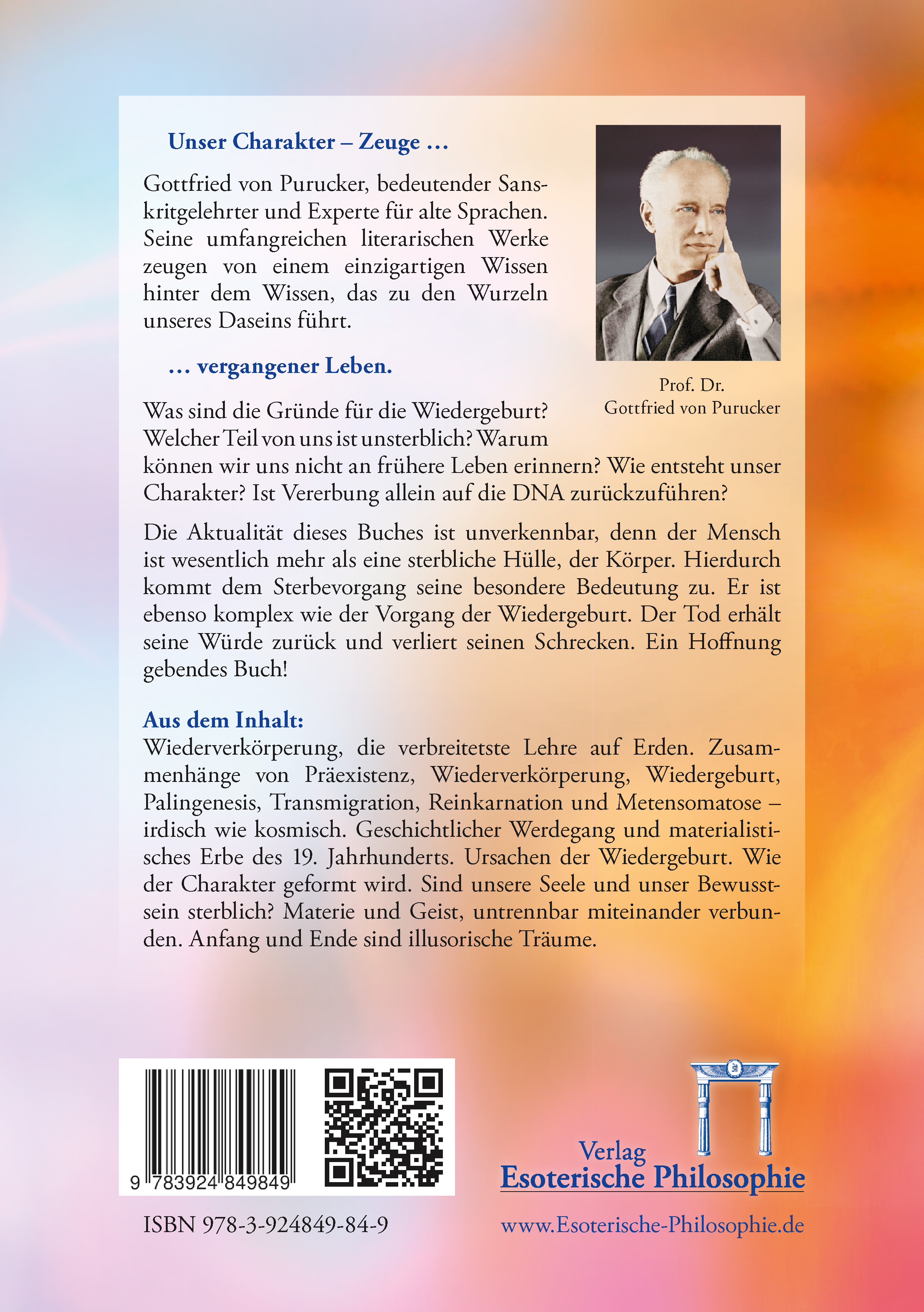 Die Antworten, die Gottfried von Purucker, seinerzeit Präsident der Theosophischen Universität Point Loma, Kalifornien, in diesem Buch ausbreitet, sind logisch aufgebaut, fundiert und plausibel. Sie sind ein wertvolles Angebot zum Weiterdenken.